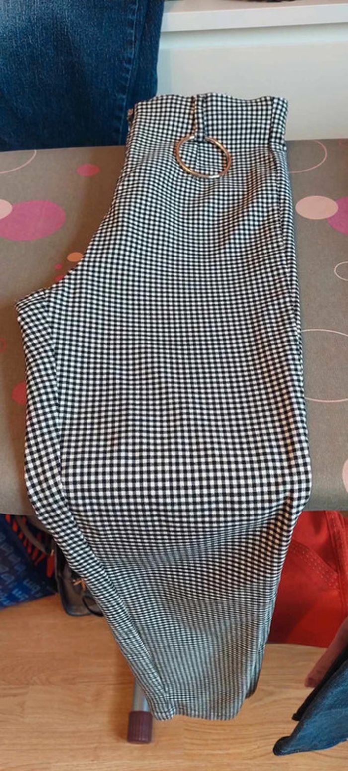 Très beau pantalon femme Jennyfer 38 vichy noir et blanc excellent état - photo numéro 2