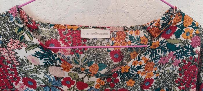 Magnifique blouse femme Cache Cache 40 fleurie manches doubles volants très bon état - photo numéro 7