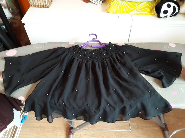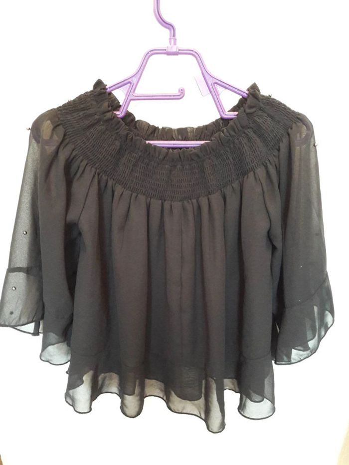 Jolie blouse ample femme épaules dénudées manches 3/4 noir XS Jennyfer excellent état - photo numéro 1
