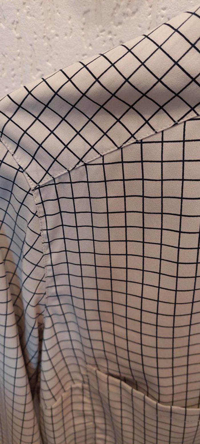 Belle chemise femme Pimkie M à carreaux crème/bleu marine aspect satinée excellent état - photo numéro 5