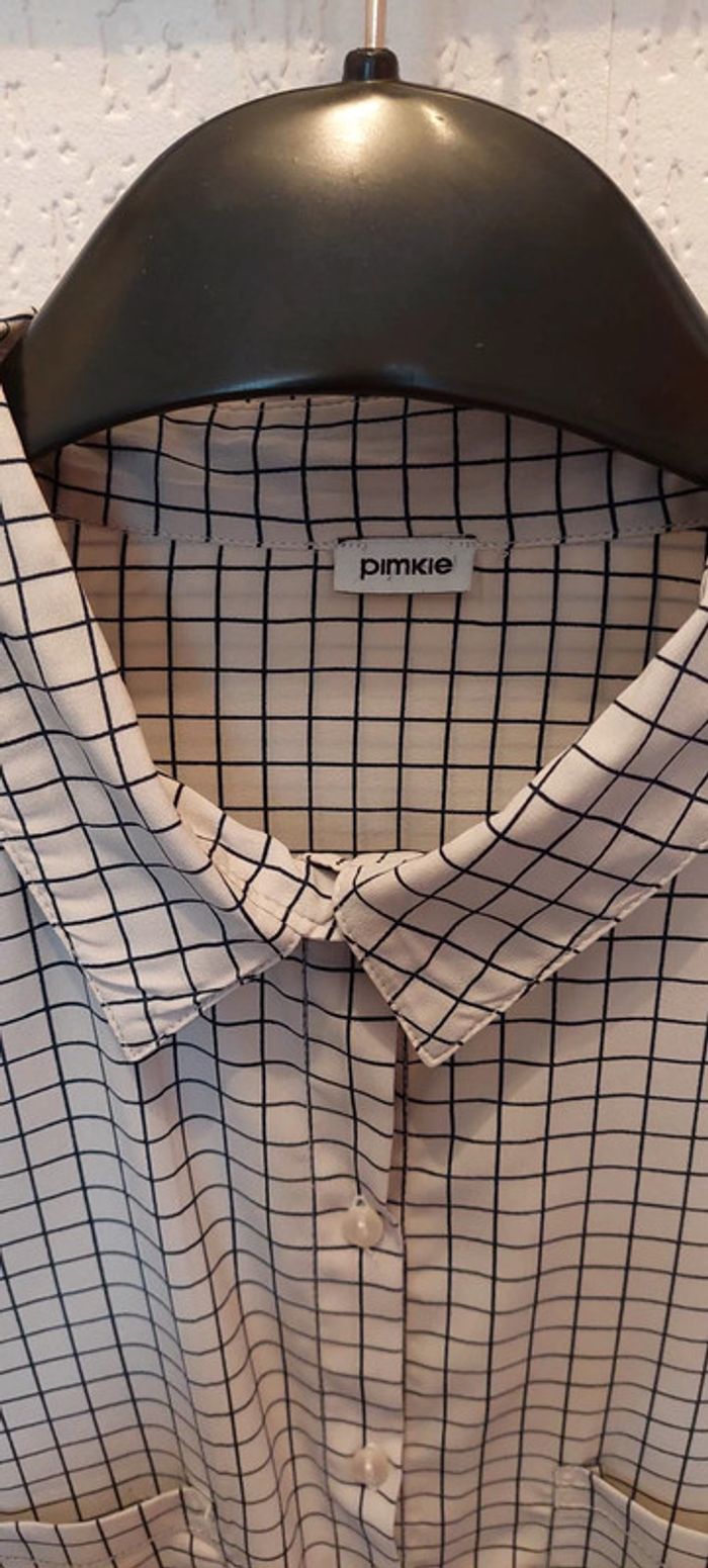 Belle chemise femme Pimkie M à carreaux crème/bleu marine aspect satinée excellent état - photo numéro 4