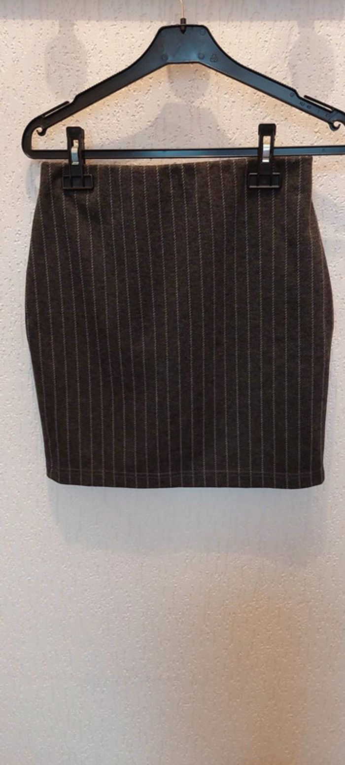 Superbe mini-jupe grise rayée New Look taille haute 36 comme neuve - photo numéro 1