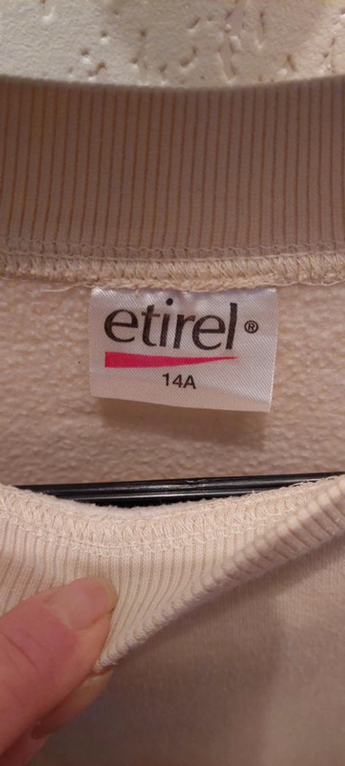 Joli sweat garçon ou fille Etirel crème 14 ans très bon état - photo numéro 3