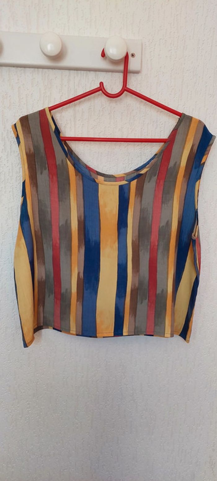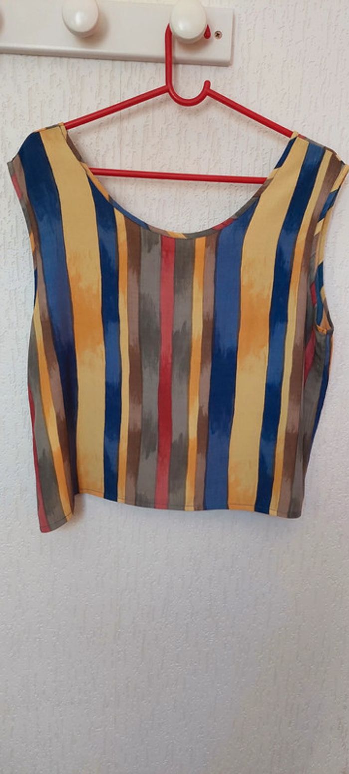 Joli débardeur femme 44/46 rayé tons jaune bleu orange très bon état - photo numéro 1