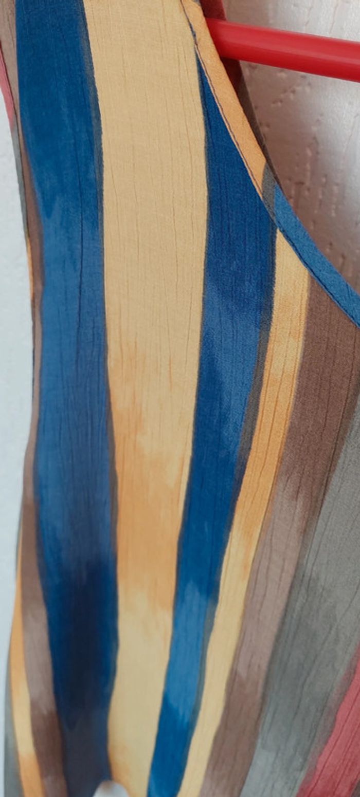 Joli débardeur femme 44/46 rayé tons jaune bleu orange très bon état - photo numéro 4