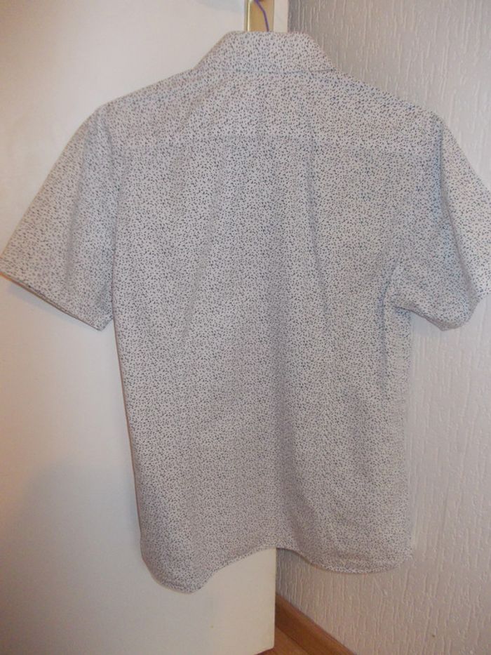 Belle chemise femme cintrée Célio S (37/38) crème petites feuilles bleu marine très bon état - photo numéro 2