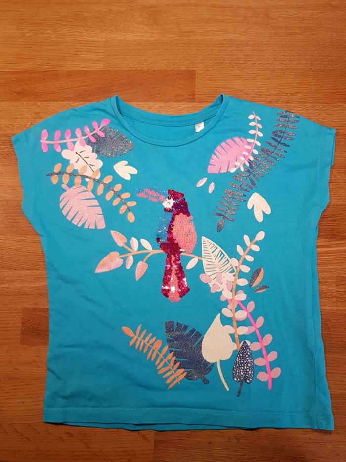 T-shirt manches courtes fille turquoise sequins 5 ans - photo numéro 1