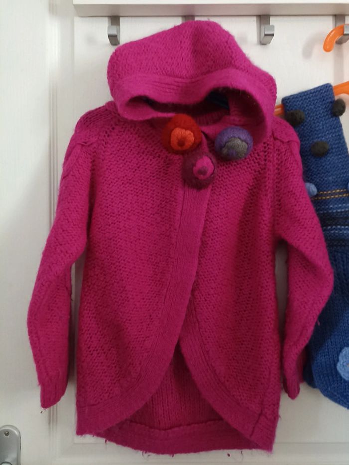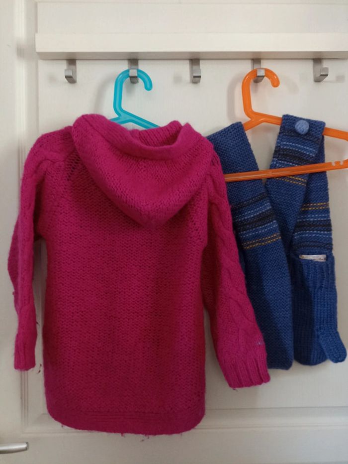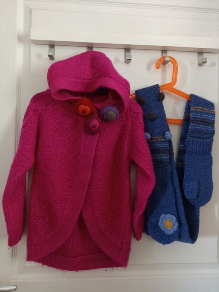 Gilet capuche 6 ans, en laine 15% et en mohair 18%, neuf, jamais porté, 0 bouloche + écharpe moufles 2 en 1 Lisa Rose, neuve, pas portée #petitenenette6ans 🎉 Réduction sur lot activée🛍️