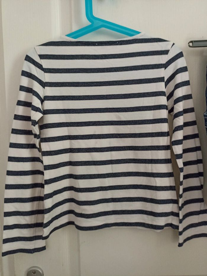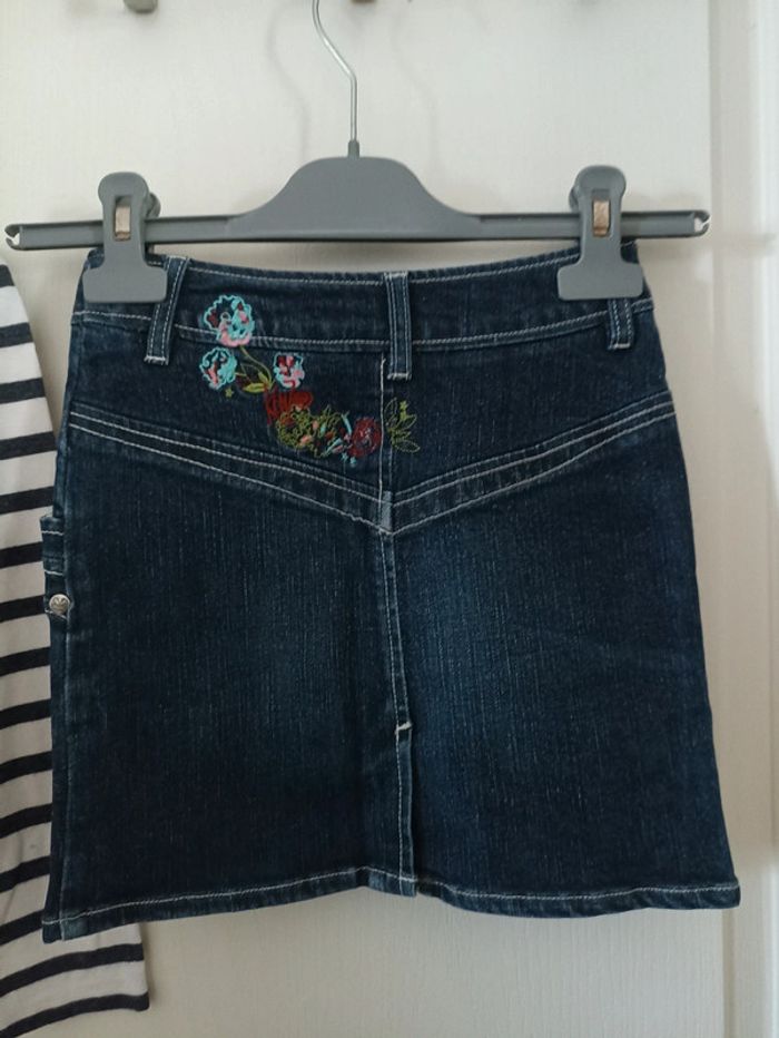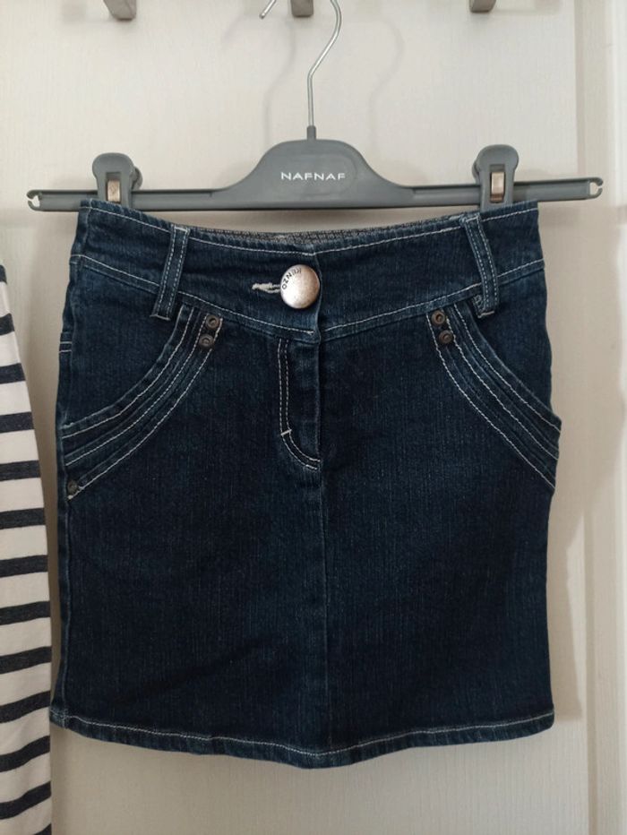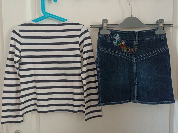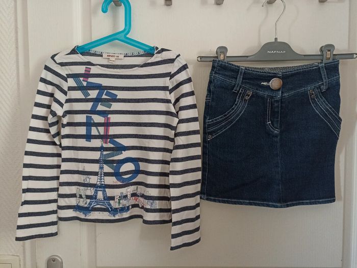Haut marinière Paris + jupe en jean's avec gros bouton métal siglé et broderies #petitenenette8ans 🎉 Réduction sur lot activée🛍️