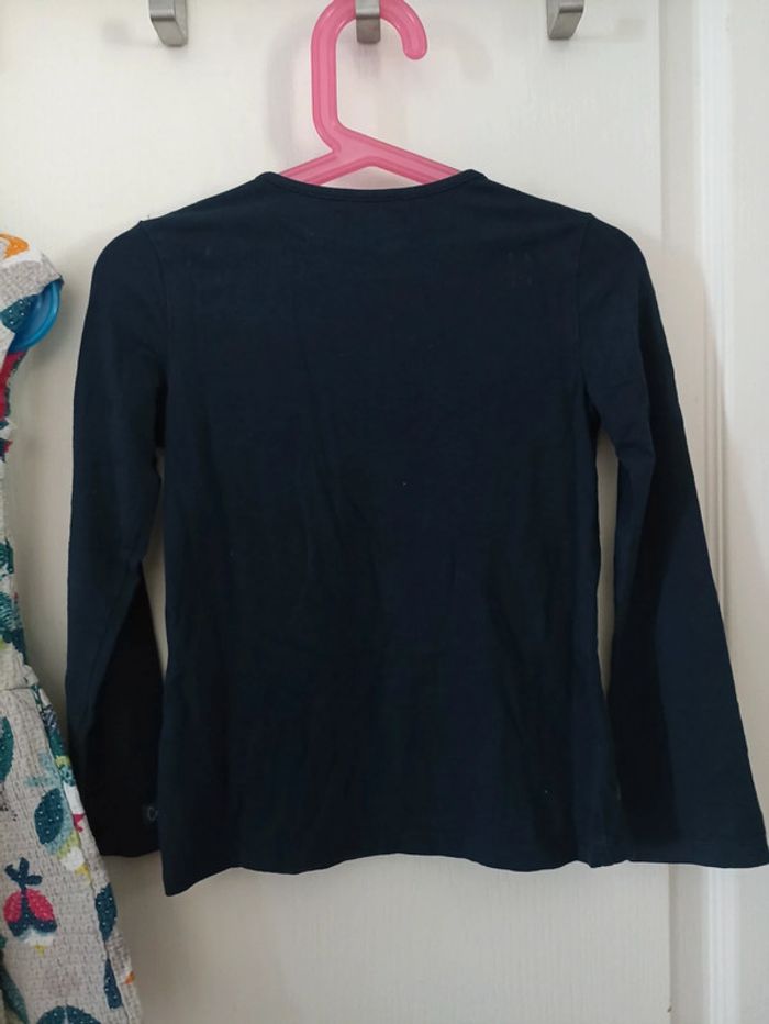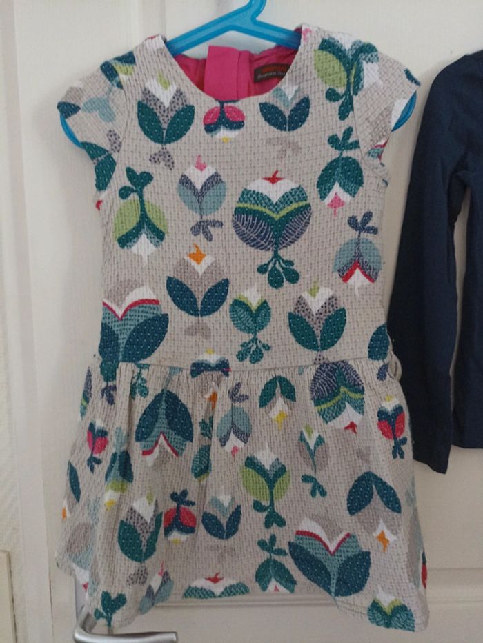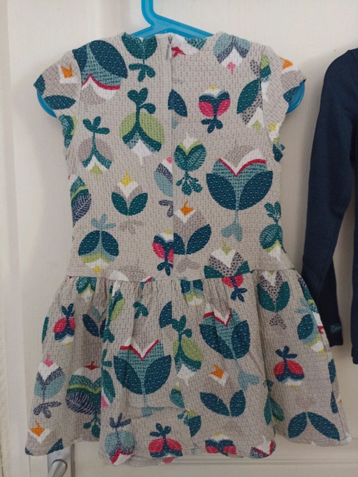 Superbe ensemble composé d'un tee-shirt ml bleu nuit + robe gaufrée imprimé floral Peu porté #petitenenette6ans 🥳 Réduction sur lot🛍️