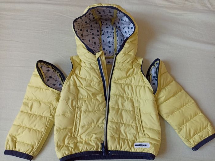 Doudoune légère à capuche avec manches détachables par zip ! Peu portée #petitbonhomme12m 🥳 Réductions sur lot🛍️
