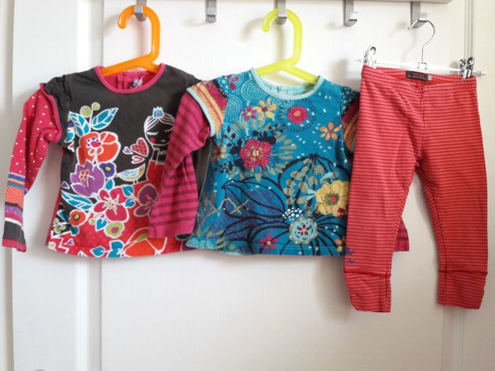 Joli ensemble de chez Catimini en 2 ans 2 hauts colorés + 1 legging A noter : traces discrètes de feutres (photo) #petitenenette2ans 🎁Réduction sur lot