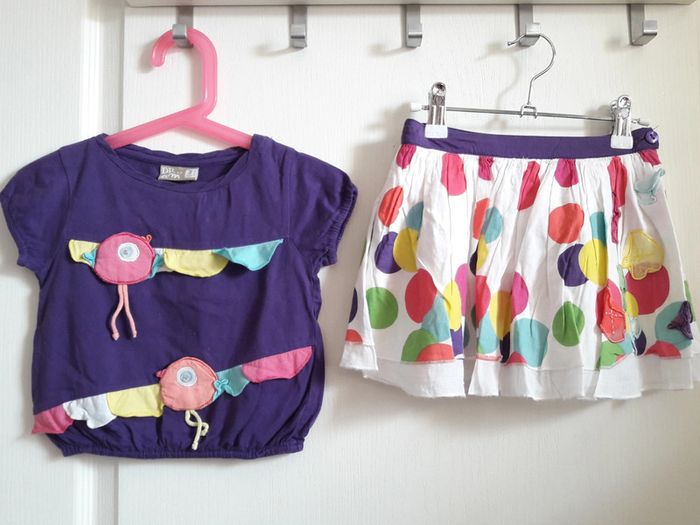 Joli 2p haut + jupe colorés Dpam en 3 ans Jupe réglable #petitenenette3ans 🎁Réduction sur lot