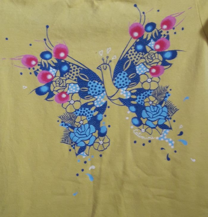Jolie robe jaune de chez Catimini en 5 ans Motif papillon scintillant, matière en coton épais / Portée 1 fois #petitenenette5ans 🎁Réduction sur lot