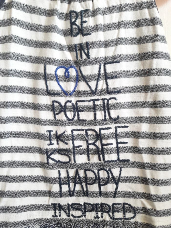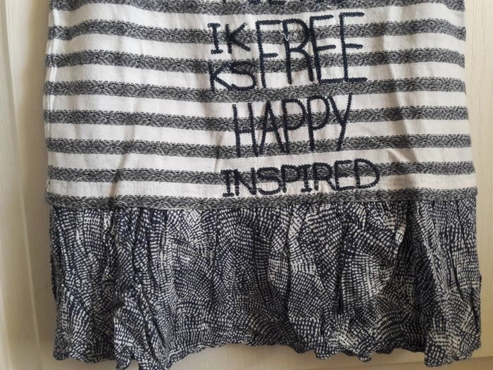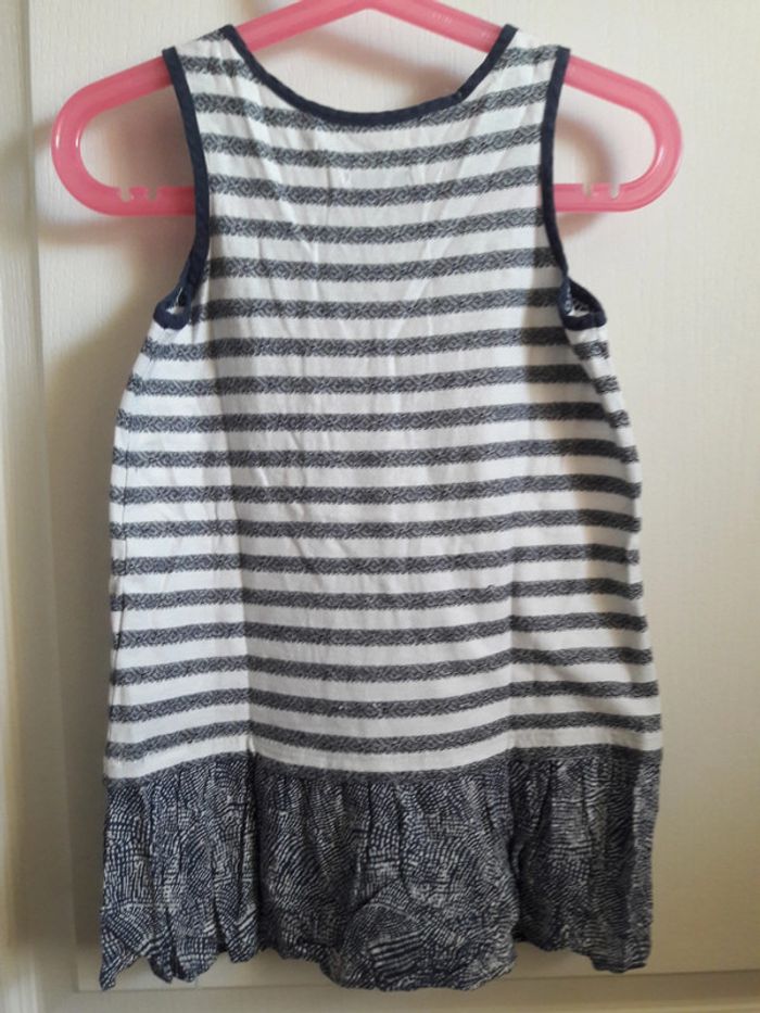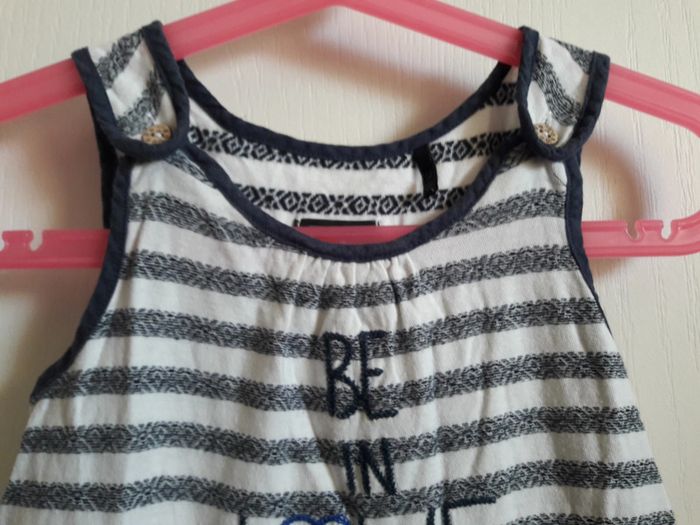 Petite robe d'été de chez Ikks en 5 ans Haut rayé débardeur avec inscription A noter : petite tâche discrète au dos que je n'ai pas essayé d'enlever #petitenenette5ans 🎁Réduction sur lot