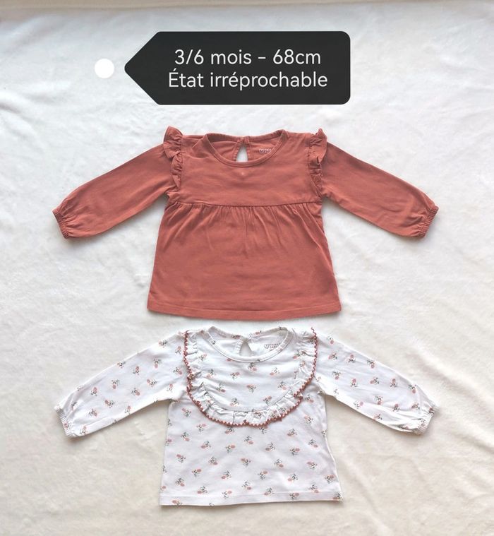 #Luffyshop_3mois #Luffyshop_6mois Lot de 2 t-shirts manches longues Un marron et un blanc motif fleurs Taille 3/6 mois - 68cm État irréprochable 📌 Les vêtements bébé que je vends sont uniquement neufs ou en état irréprochable car de première main, sans tâches, sans bouloches, maison non fumeur. 🔔 Pensez à faire des lots pour bénéficier de réductions et limiter vos frais d'envoi 📝 N'hésitez pas à me contacter pour toutes questions ou photos supplémentaires 😊 📦 Envoi rapide dans la journée ou au plus tard le lendemain 🎁 Une petite attention dans chaque Colis