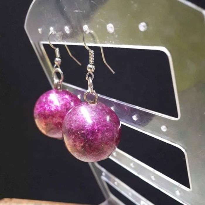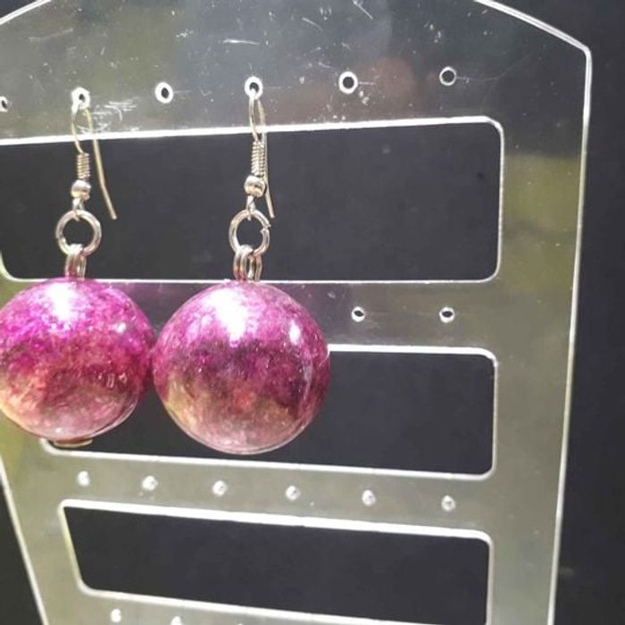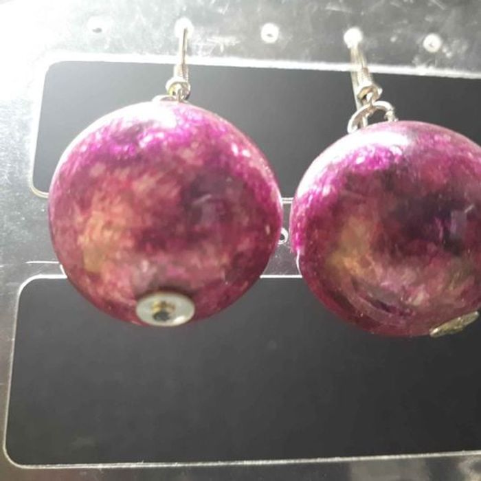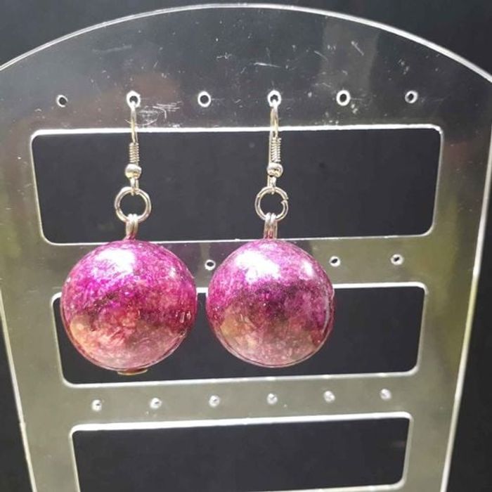 Boucles d'oreilles femme Forme boules Matières métal et plastique Couleurs nuancés de rose et argenté Fermoirs crochets Dimension 5cm de long et 2,5cm de large En très bon état