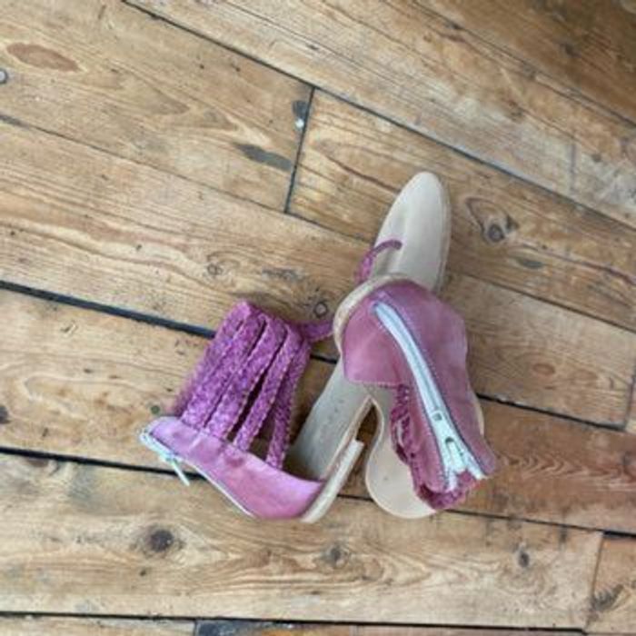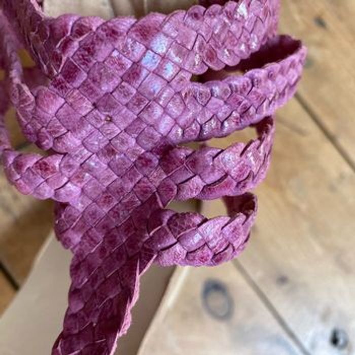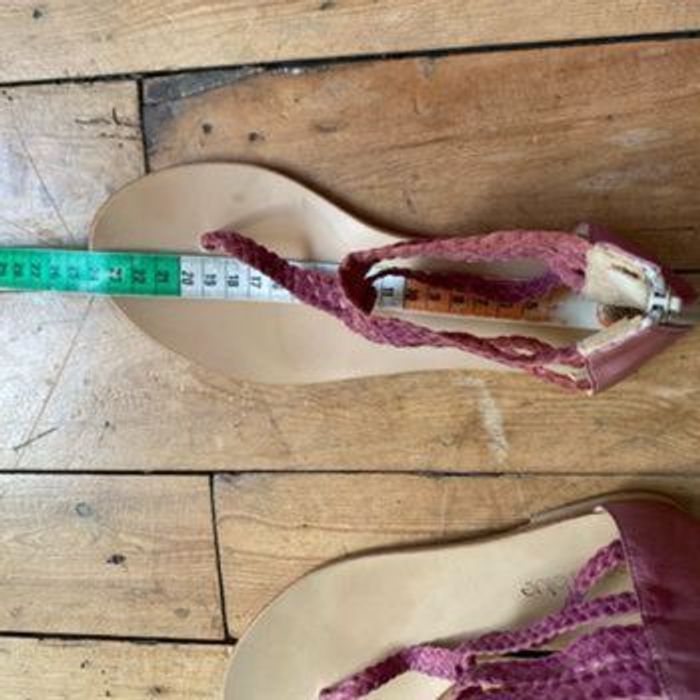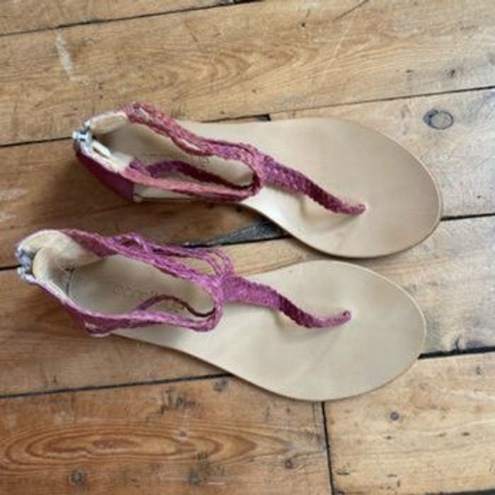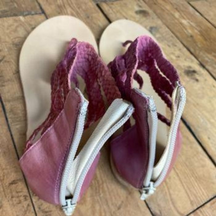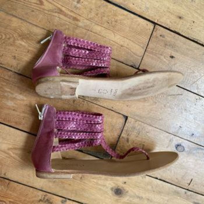 Nu pieds sandalettes Tongs 🇮🇹 cuir violine tressé Quasiment neuves, Mises une fois ! Couleur décolorée par endroits mais acheté comme ça Fermeture YKK ( une référence de qualité) Pointure 37 Chaussures italiennes Longueur semelle intérieure 24,3 cm Coralblue