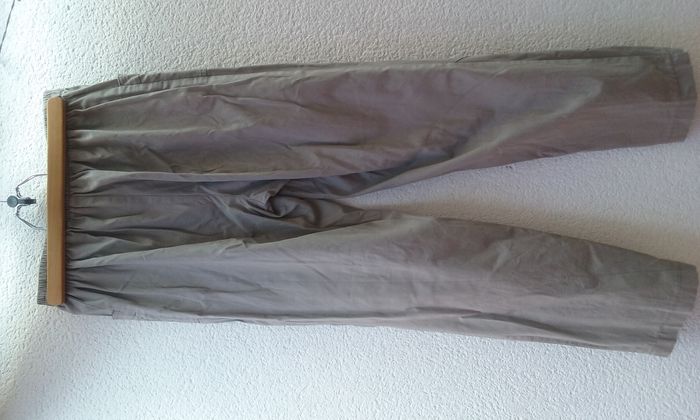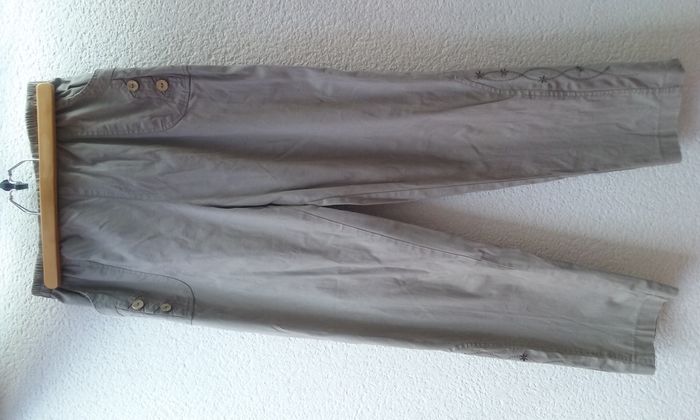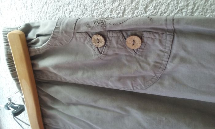 Taille élastiquée, 2 poches, 95% coton-5% élasthanne, coloris kaki clair.