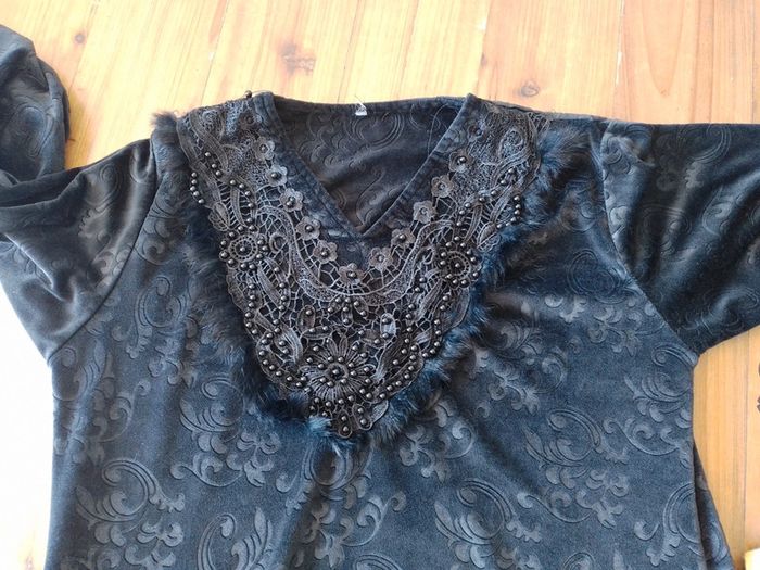 Robe épaisse et chaude, imitation velours Quelques perles sur le devant sont perdues
