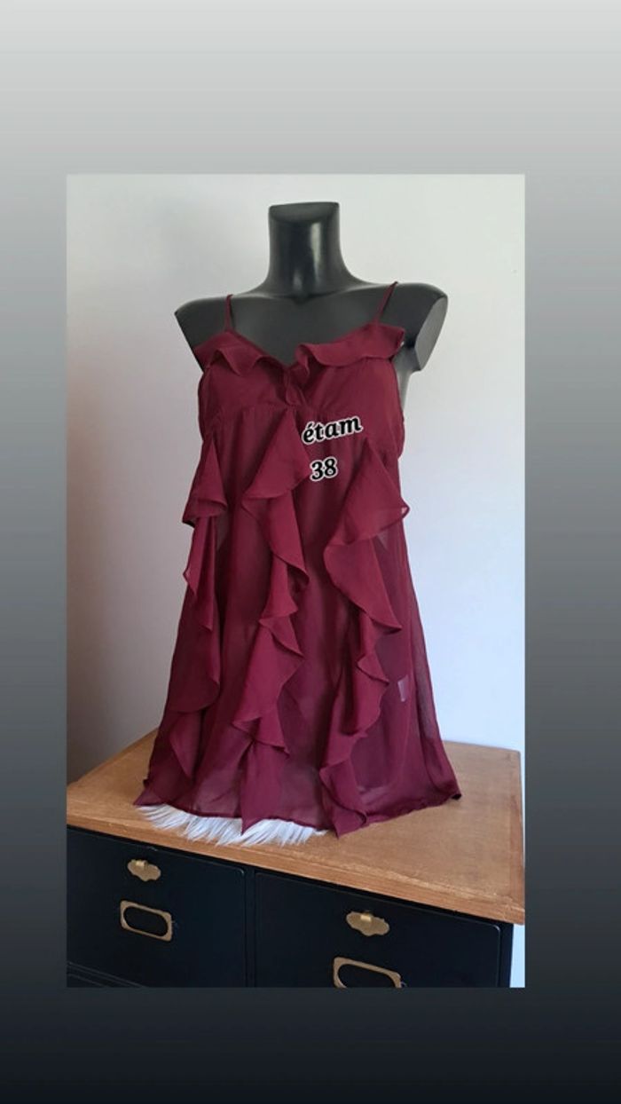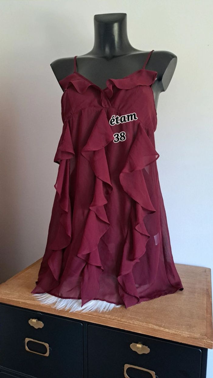 #kawin89lingerie jolie nuisette de chez étam, taille 38 article neuf, jamais porté couleur bordeaux, bretelles réglables 100% polyester je reste à votre disposition pour toute information complémentaire 😃