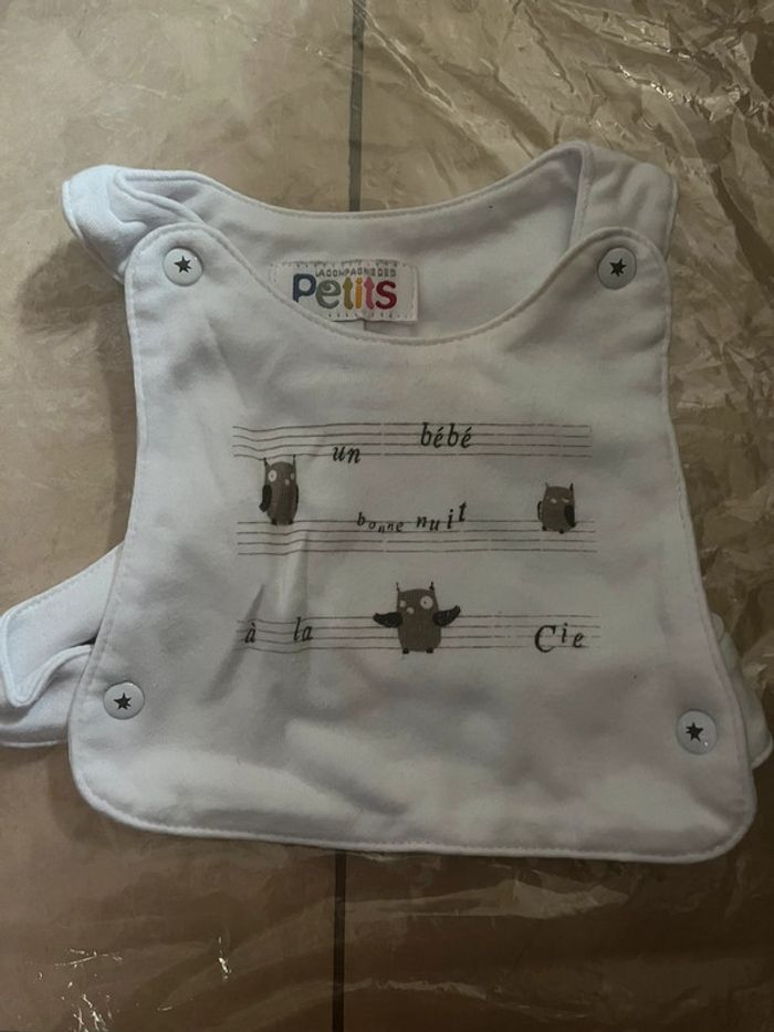 Bavoir ou top (je ne sais pas trop à quoi il sert enfaite et je l’ai utilisé en tant que bavoir 😅) marque la compagnie des petits taille 1 mois, d’autres produits bébé disponible dans mon dressing