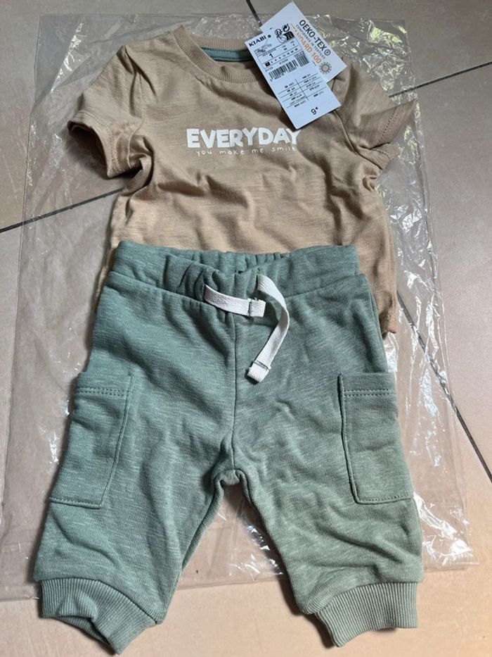 Ensemble bébé pantalon et tee shirt taille 1 mois marque kiabi neuf avec étiquettea la base cet ensemble est pour garçon mais pour moi il fait unisexe (je l’avais d’ailleurs acheté pour ma fille) d’autres articles bébé disponible dans mon dressing