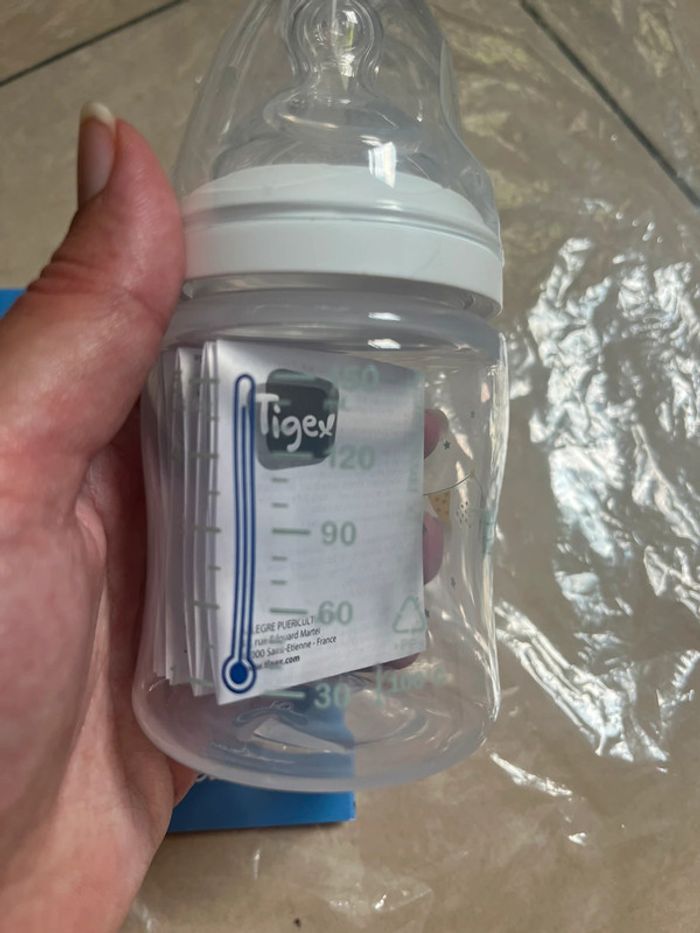 Biberon 150ml Tigex multiflow neuf ma fille a préféré une autre marque, d’autres produits bébé disponible dans mon dressing