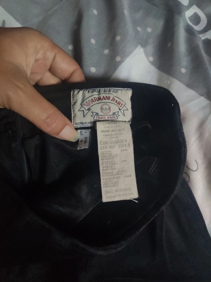 Jupe Armani jeans noire taille US 8 matière aspect velours à noté que la jupe a été marquée par le ceintre visible sur Les dernières photos