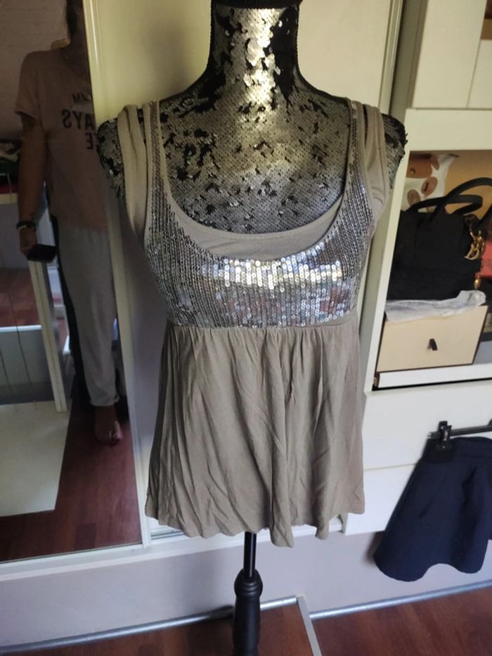 Débardeur Jennyfer gris avec paillettes taille M quelques défauts visible sur les photos