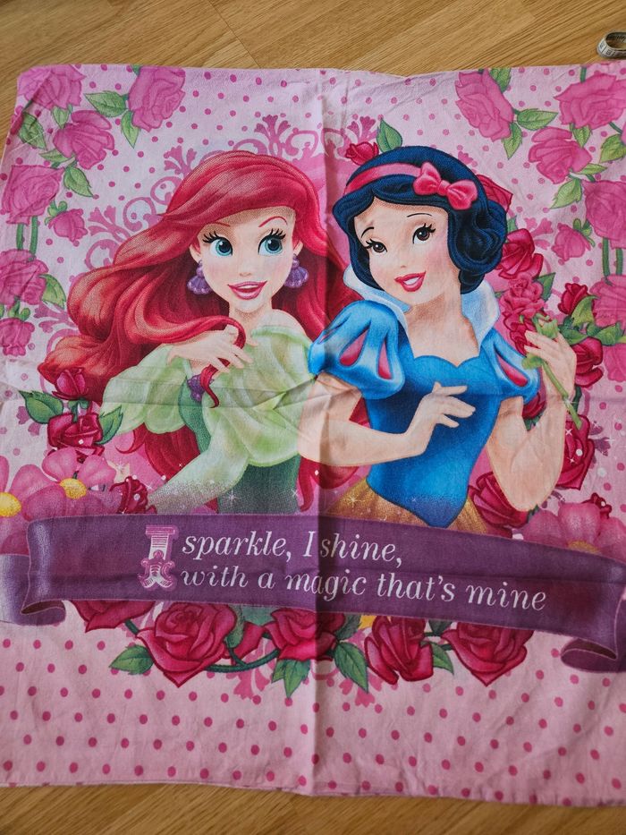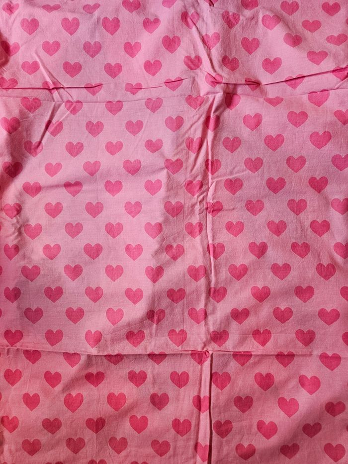 Parure de lit enfant comprenant une housse de couette réversible ( un côté princesses et l'autre côté avec des coeurs) en 140 x 190 et une taie d'oreiller princesses en 63 x63 cm.