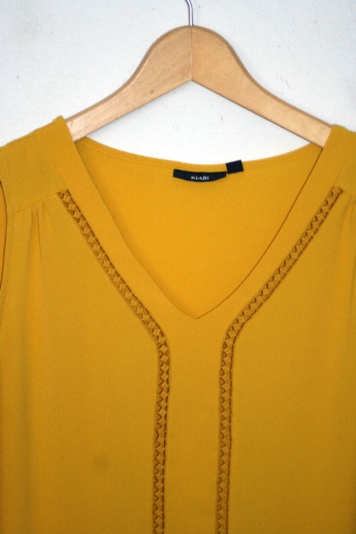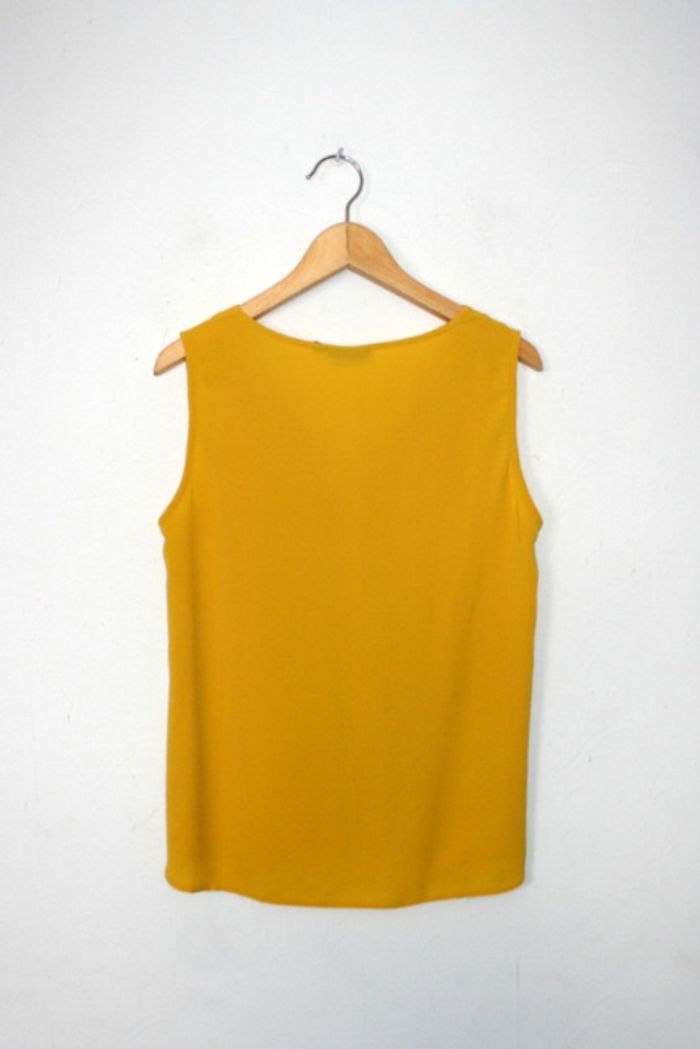 Blouse sans manche moutarde de chez Kiabi, taille L (env 42/44), 60cm de long / 50cm d'aisselle à aisselle / 36cm d'épaule à épaule, 110g