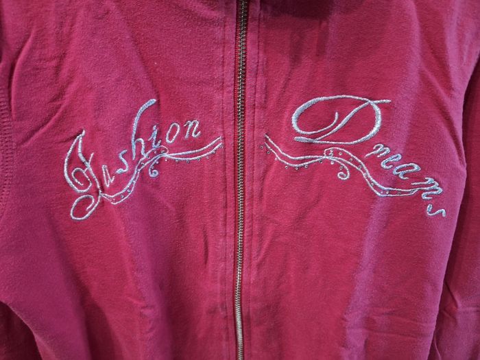 Joli gilet col montant fuchsia, inscriptions argentées devant, 2 poches devant, fermeture éclaire ok, marque Walk and Talk, taille 38/40, peu porté en très bon état