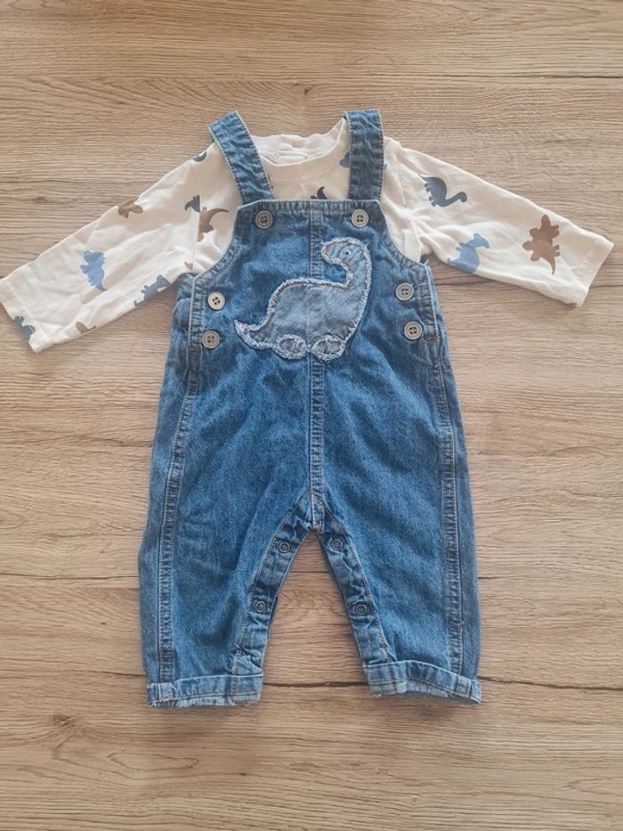 Ensemble salopette + tee-shirt manches longues Motifs dinosaures Jamais porté
