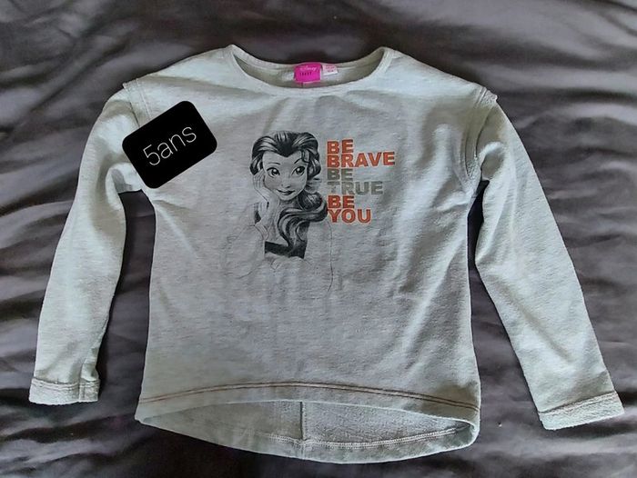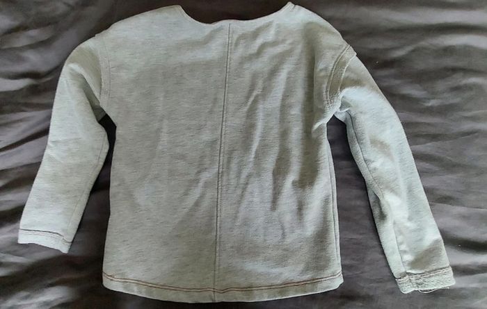 Pas de defaut. Sweat assez fin plus long à l'arrière. Je crois que c'est Belle dessus. #jena59_5ans
