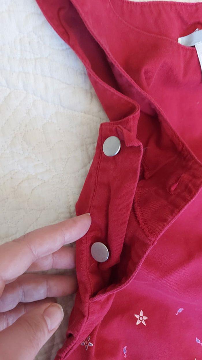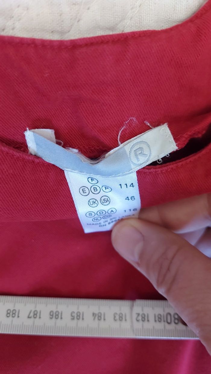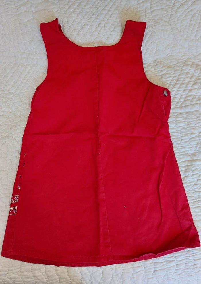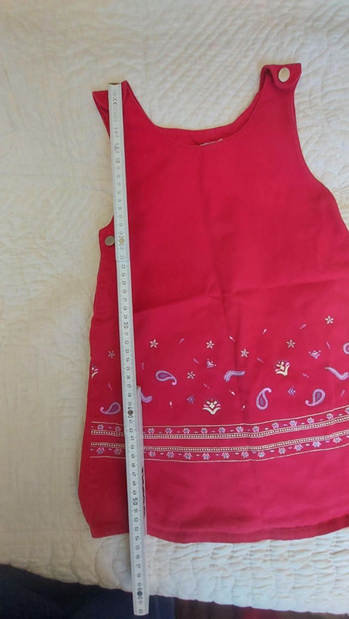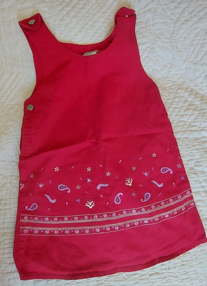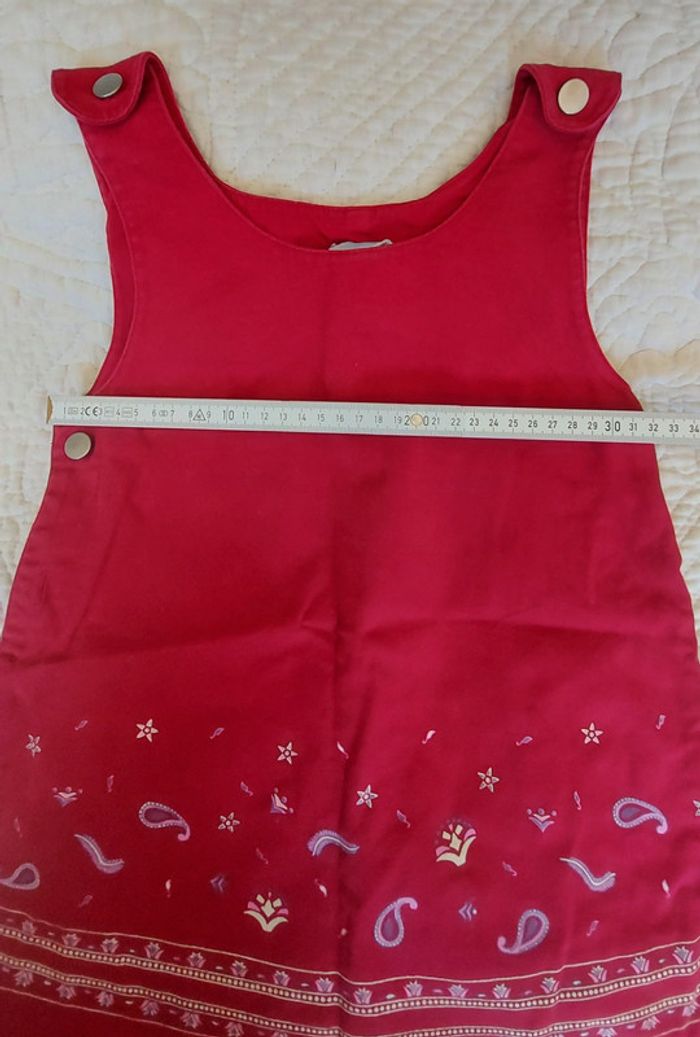 Robe chasuble qui s'ouvre sur le côté. Boutons sur les bretelles. Tissus assez rigide qui a de la tenue.pas de defaut particulier. Les mesures sont sur les photos. #jena59_6ans