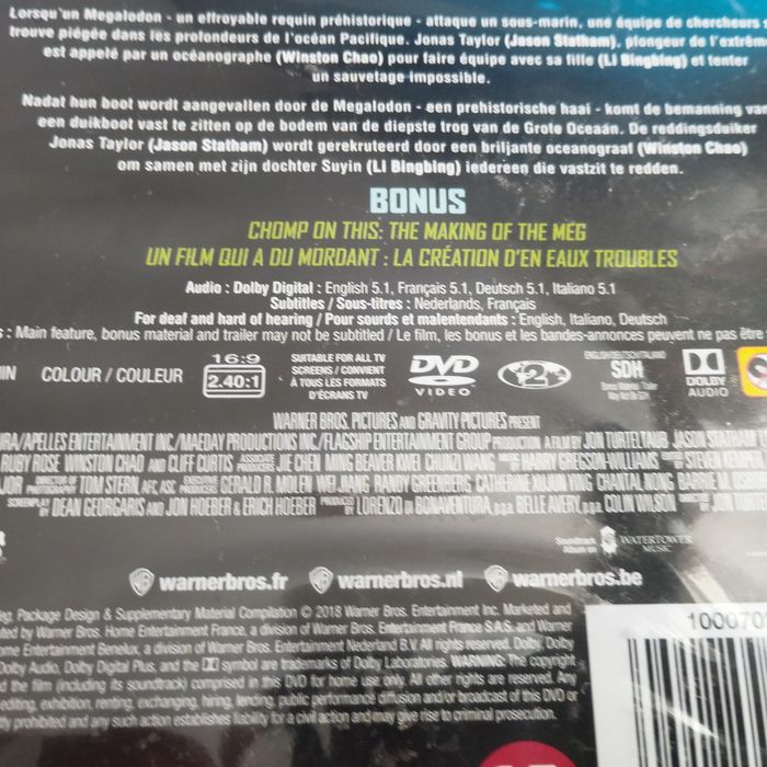 Dvd film En eaux troubles The Meg. Dvd neuf dans son emballage d'origine sous plastique jamais ouvert.