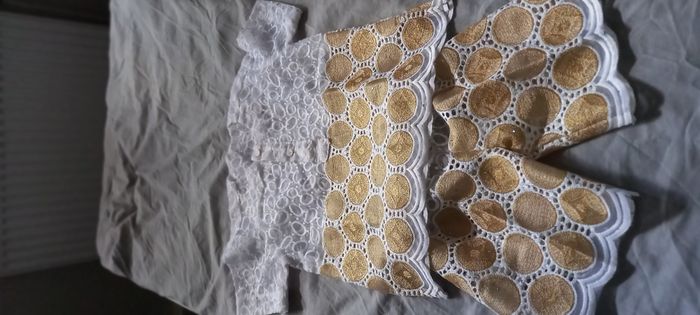 Ensemble short t-shirt Tissu africain dentelle blanc et or Taille 12-18 mois Fait main Neuf jamais porté #enfants_imoddeco