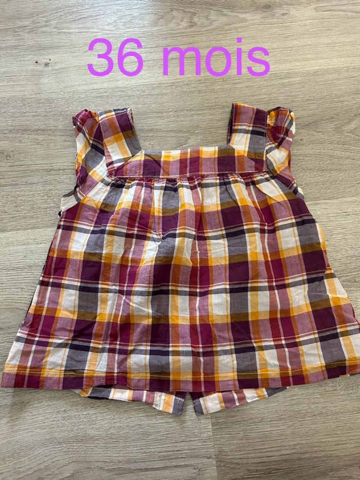 Blouse sans manches. Boutons dans le dos. Se porte large. Taille : 36 mois, 94 cm. Marque : Vertbaudet. #3ansfillelulvque