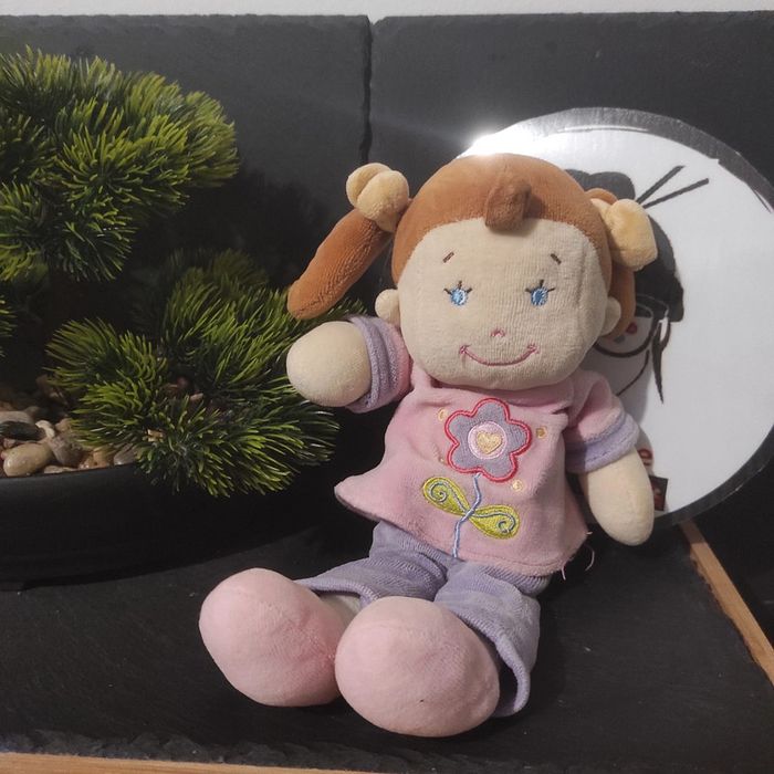 Doudou poupée fille rose violet fleurs nattes Kiabi nicotoy coeur chatain noeuds pantalon pull - photo numéro 1