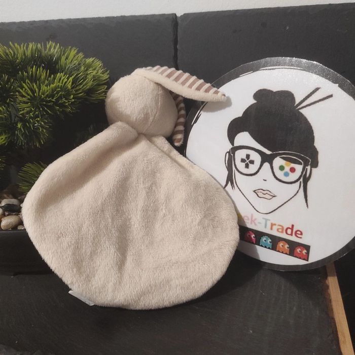 Doudou plat lapin beige et marron Dermactive rayé rayure Bon état Afin de ne pas abîmer les doudous et de laisser le choix dans l'utilisation de la lessive les peluches ne sont pas lavées avant envoi Description complément : Petit nettoyage à prévoir Vous achetez ce que vous voyez les photos font entièrement partie de la description #geektradedermactive Transport : Les frais de transport comprennent les frais du transporteur ainsi que l'emballage pour protéger au mieux votre achat. Chaque achat est envoyé en format colis avec numéro de suivi Le poids du colis est de 500g finit (je ne peux pas faire moins) il peut donc y avoir plusieurs objets dans le carton si vous le souhaitez (contactez moi afinde grouper les frais de port) Référencement : #geektradedoudou #peluche #plush  #doudou #enfa