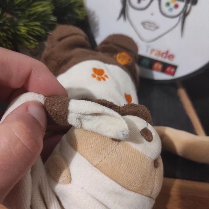 Doudou ours blanc marron empreinte baby nat bonnet colerette orange Bon état Un petit trou au bout du bonnet voir photo Afin de ne pas abîmer les doudous et de laisser le choix dans l'utilisation de la lessive les peluches ne sont pas lavées avant envoi Description complément : Petit nettoyage à prévoir Vous achetez ce que vous voyez les photos font entièrement partie de la description #geektradebabynat Transport : Les frais de transport comprennent les frais du transporteur ainsi que l'emballage pour protéger au mieux votre achat. Chaque achat est envoyé en format colis avec numéro de suivi Le poids du colis est de 500g finit (je ne peux pas faire moins) il peut donc y avoir plusieurs objets dans le carton si vous le souhaitez (contactez moi afinde grouper les frais de port) Référencement : #geektradedoudou #peluche #plush  #doudou #enfa