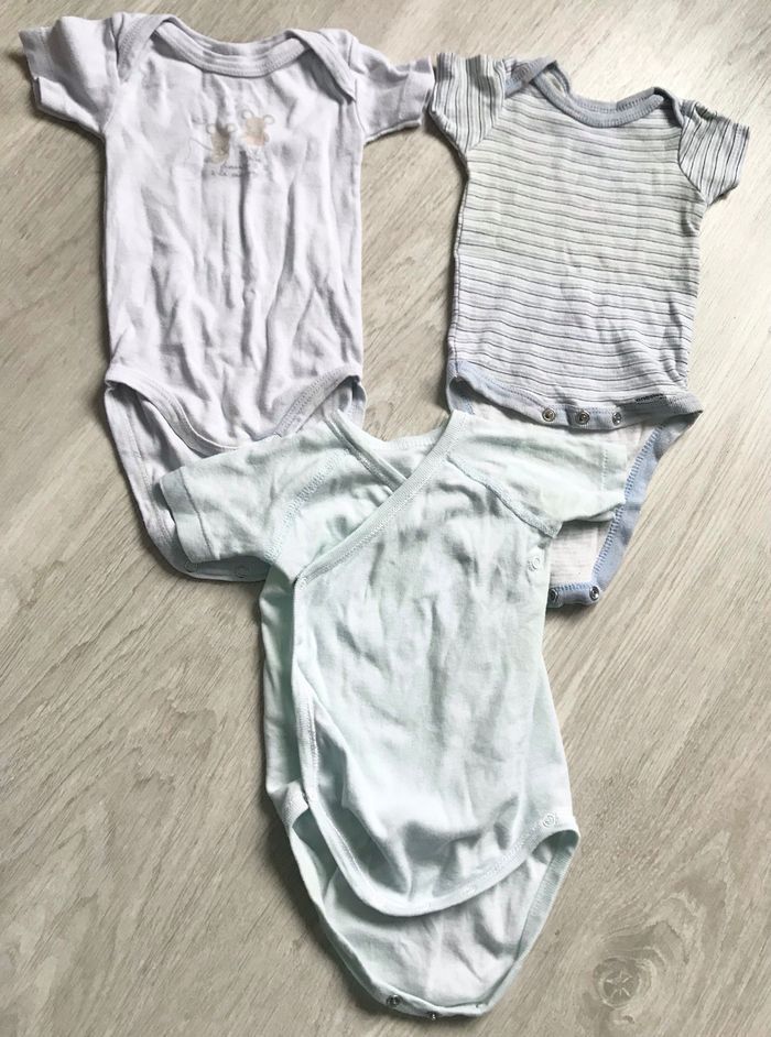 3 bodies bleus à manches courtes 3 mois - photo numéro 1