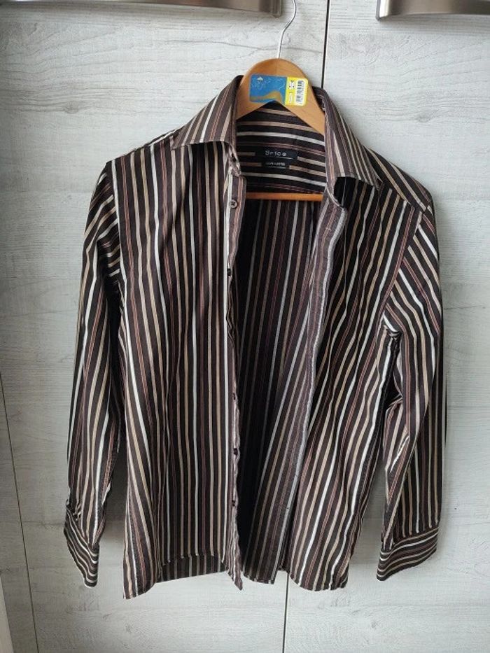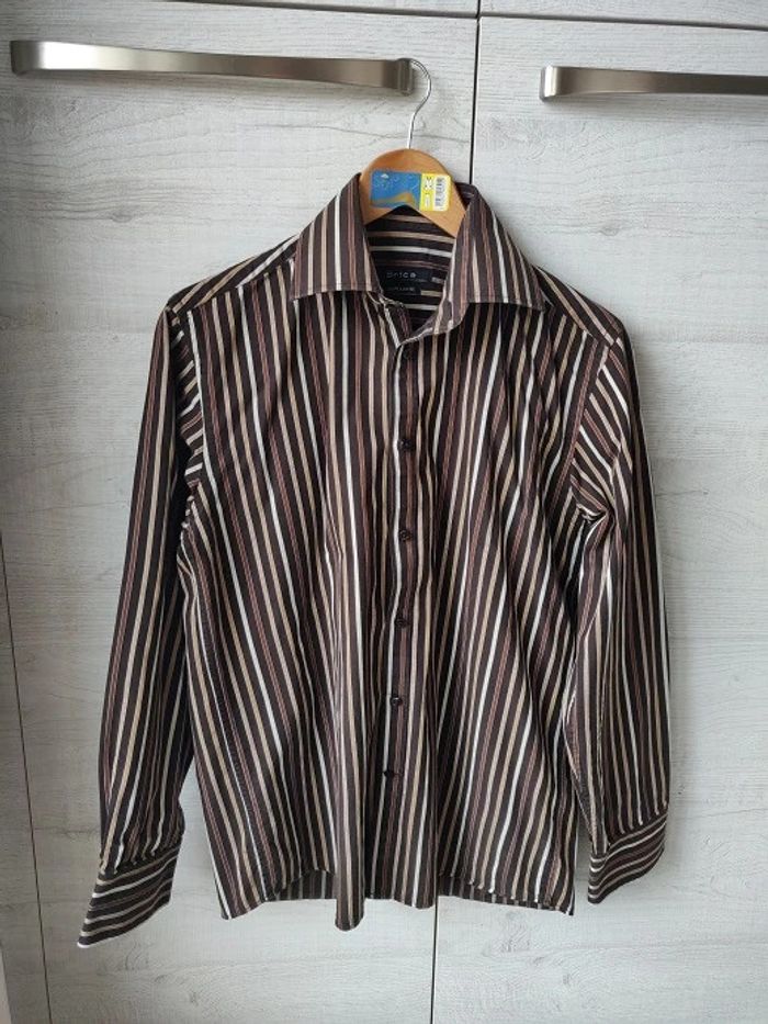 Chemise manches longues taille 2 Brice Taille ajustée Rayures marron