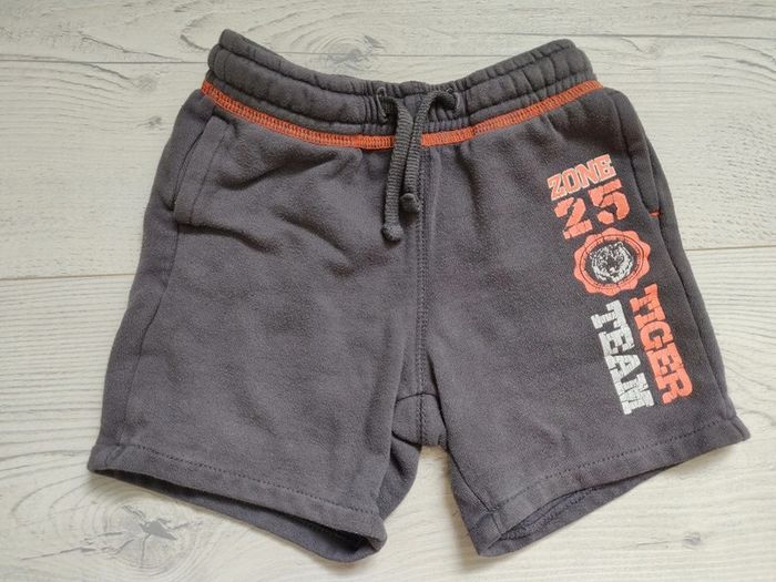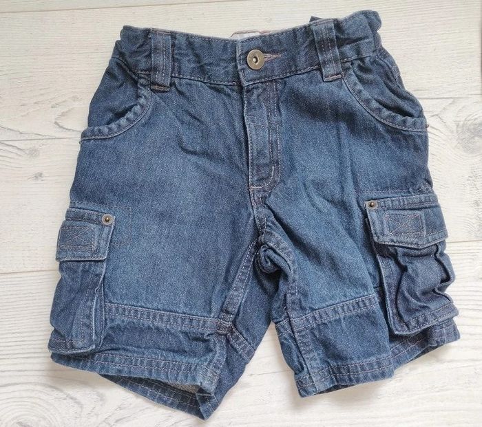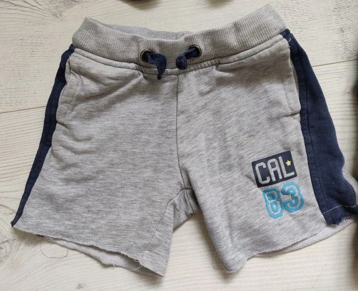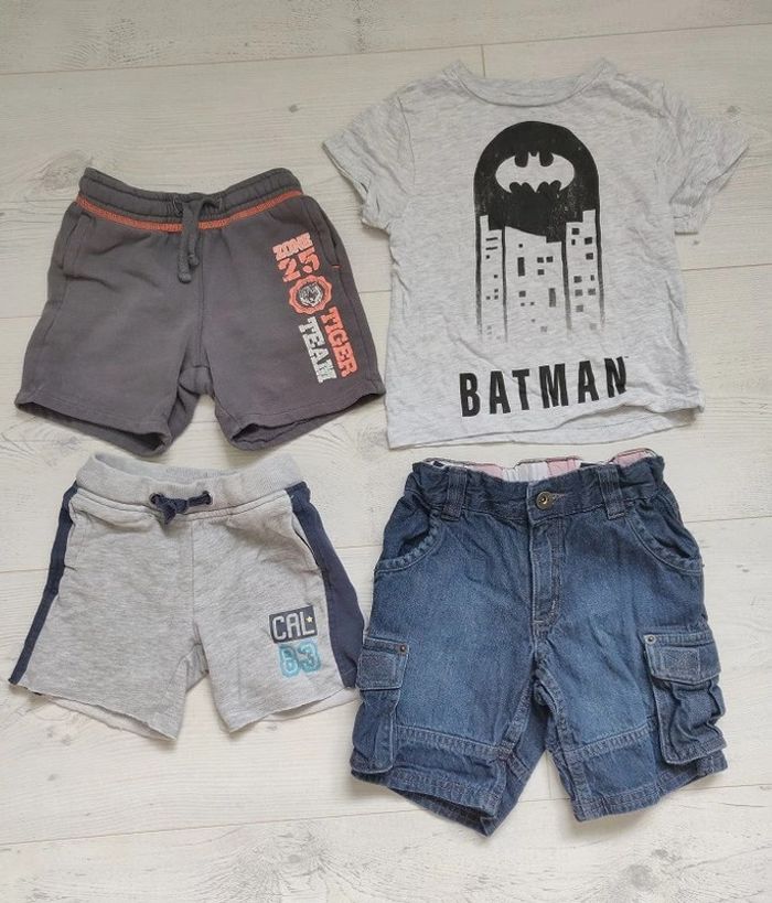 1 short en jean NKY taille réglable TBE 1 short marron KidKanaï, taille élastique + cordon BE 1 short gris TexSport, taille élastique + cordon état correct 1 T-shirt manches courtes Batman BE