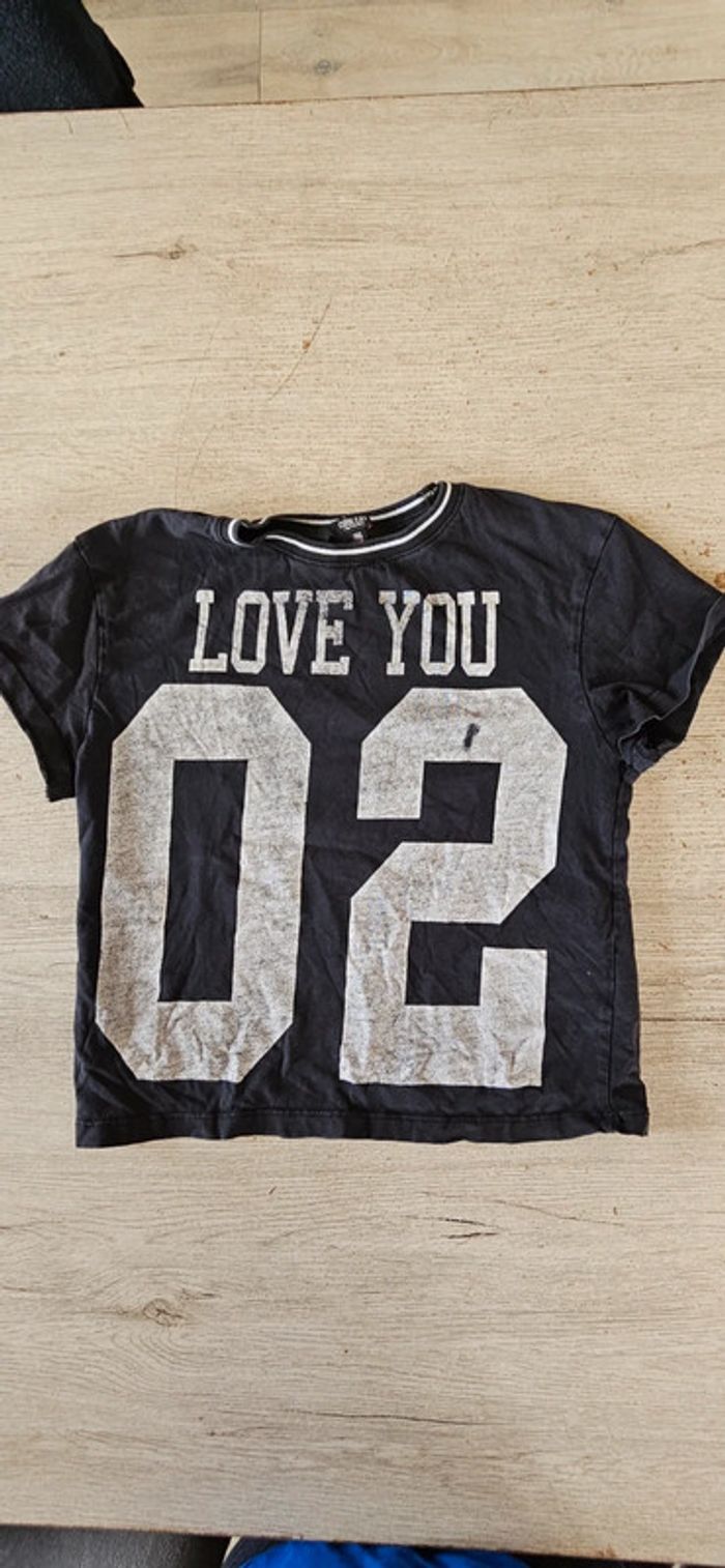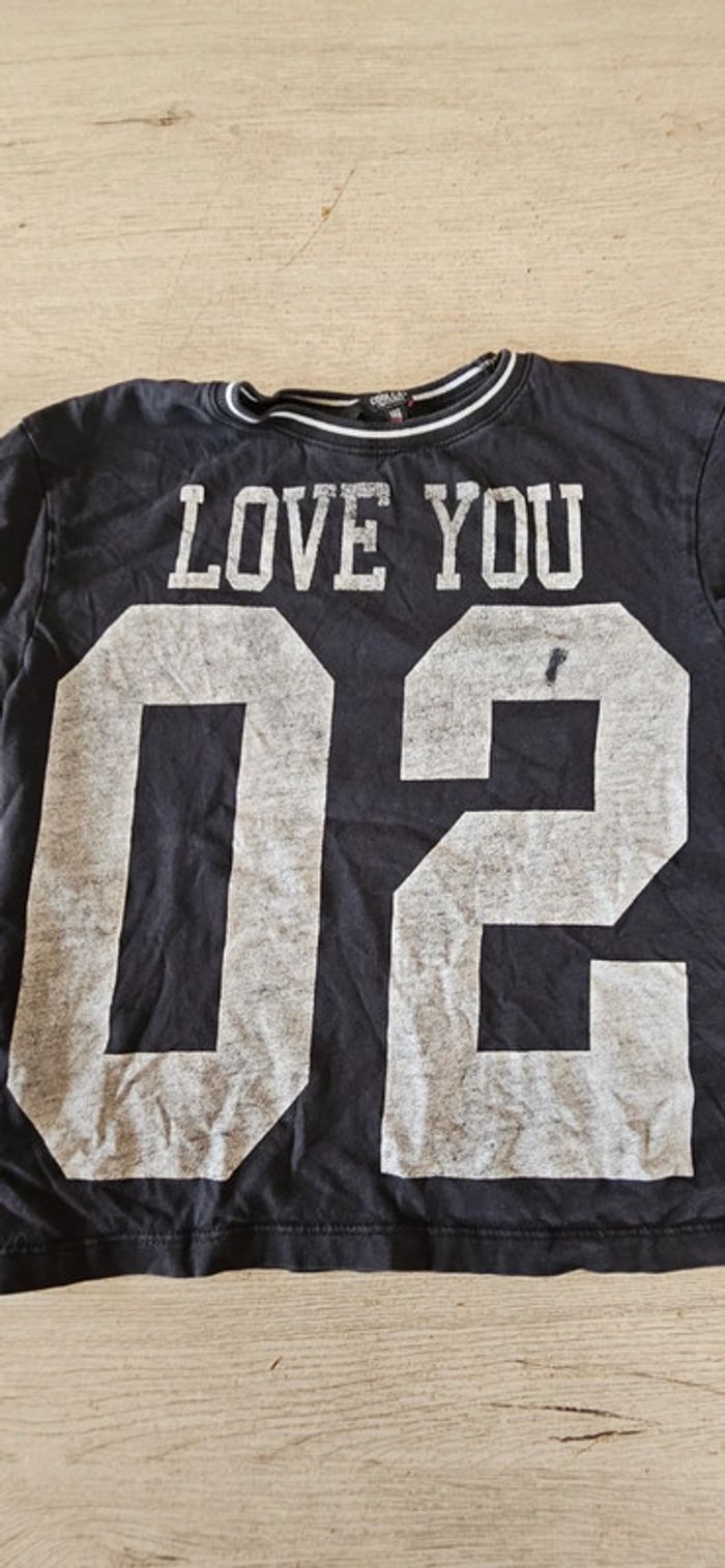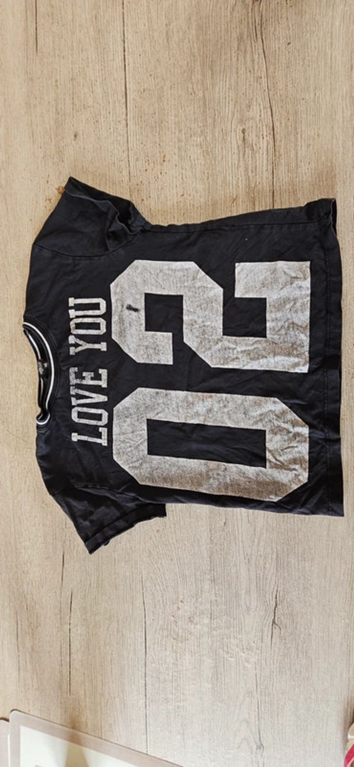 Croc top col rond. Noir avec inscription grise, manque 1 peu d inscription sur le 2, voir photo mais je pense que c était 1 petit défaut d origine. Il a été mis mais est encore bien. Convient pour du 11 à 13/14 ans #deborahtock_11ans #deborahtock_12ans