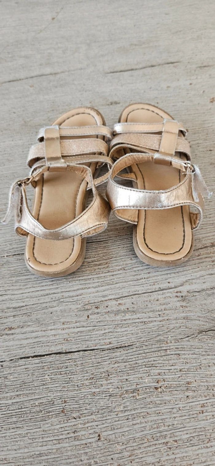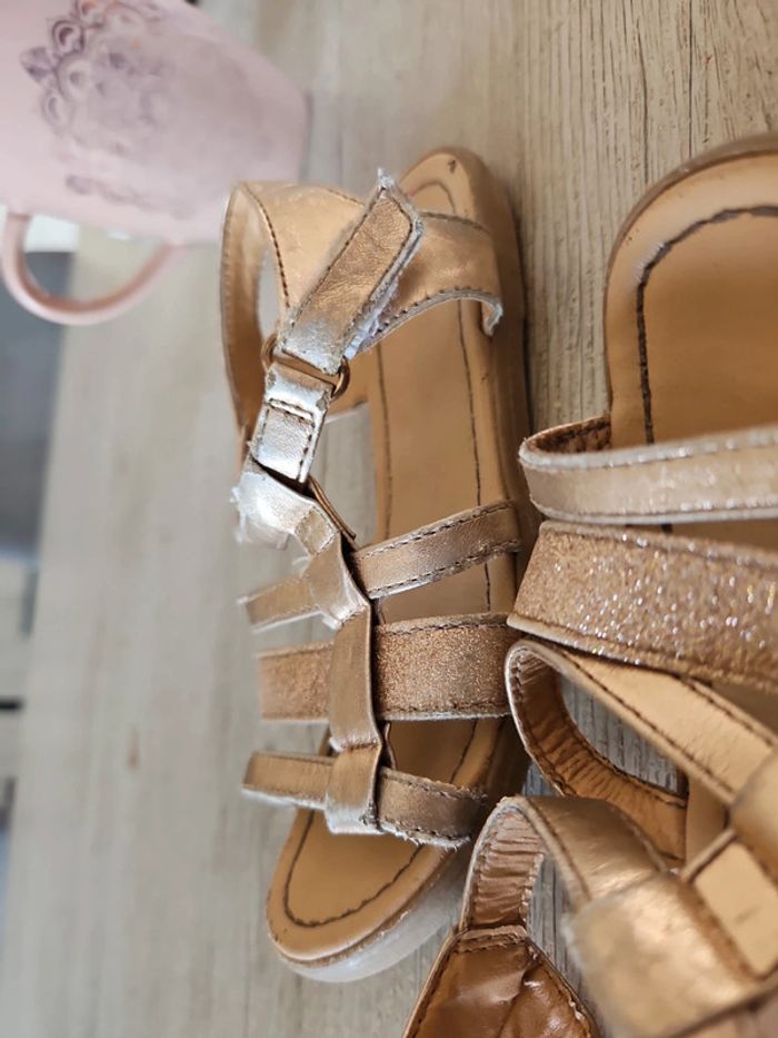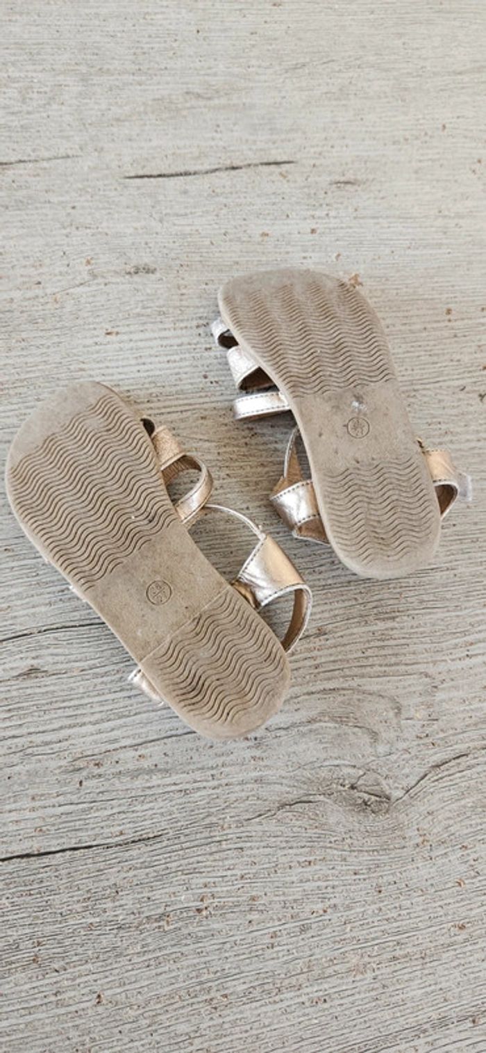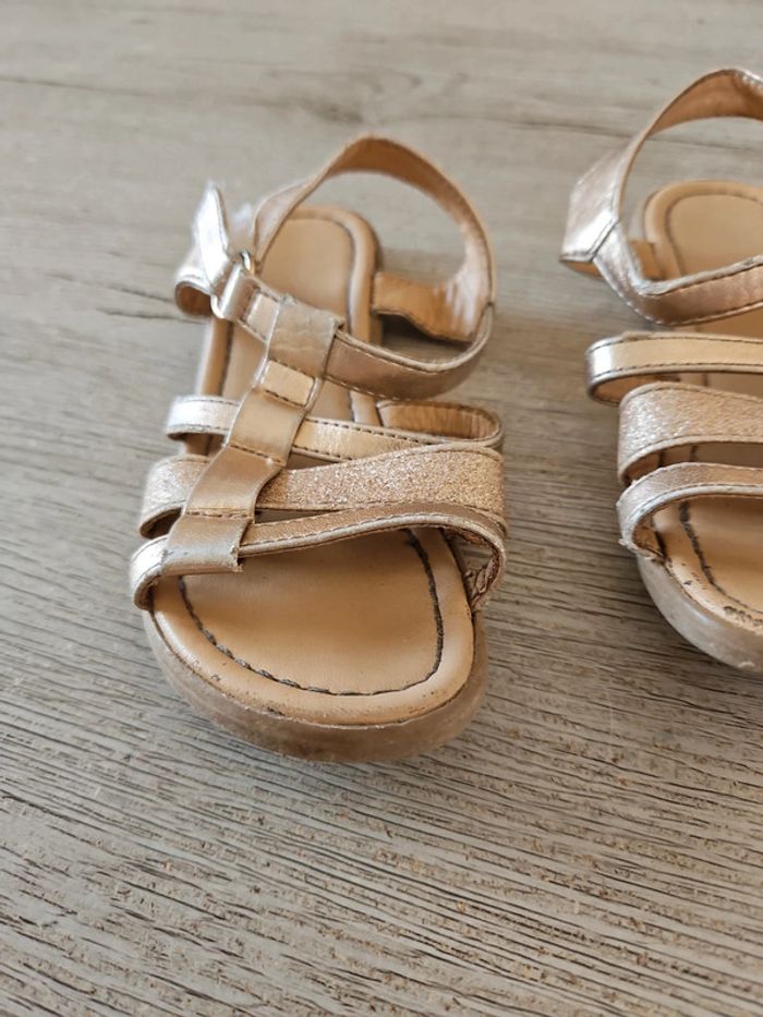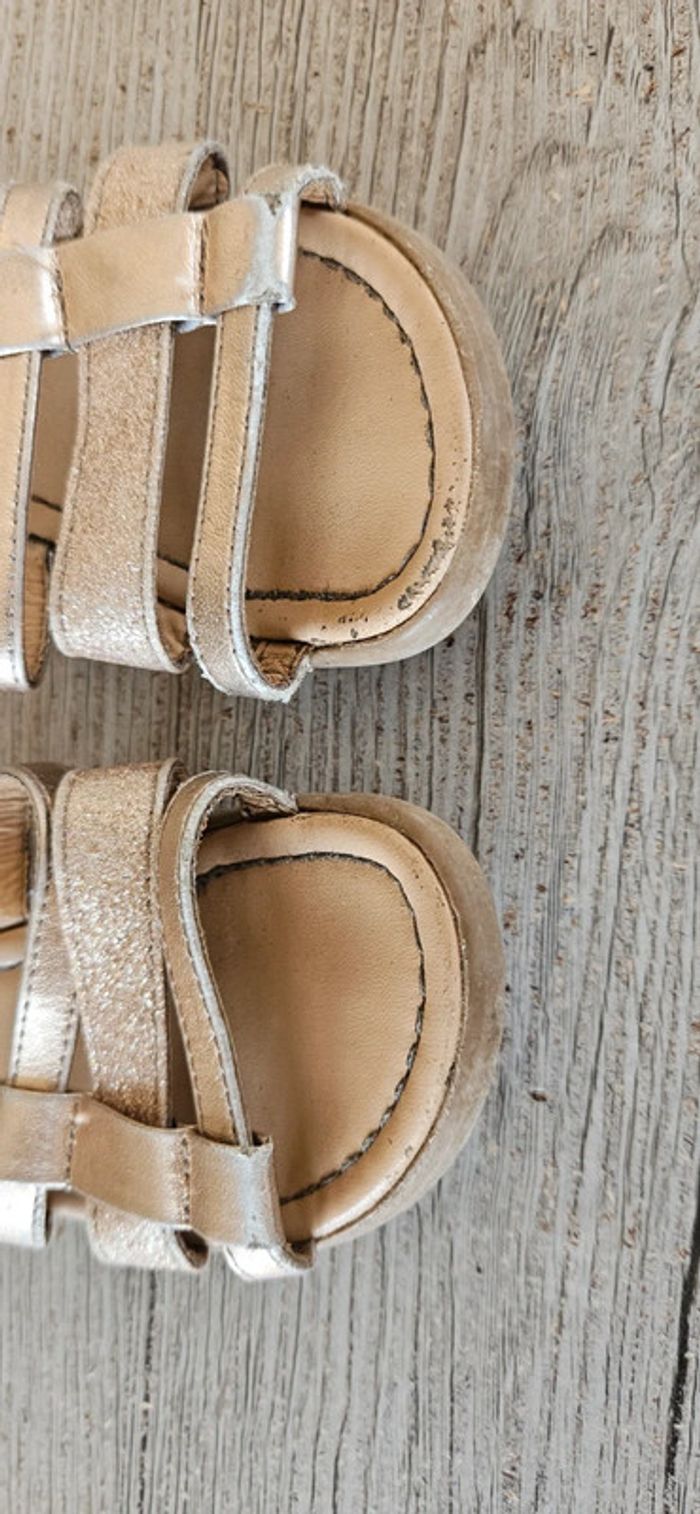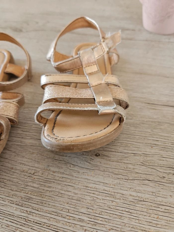 Paire de sandales simples poue petite fille. Pointure 26/27. Ma fille les a mises mais pas beaucoup. Il y a quelques traces visibles sur les photos : petites usures sur le devant de la semelle, aux stratches mais elles restent tout à fait mettables La semelle du dessous est peu usées #deborahtock_chaussures_enfant