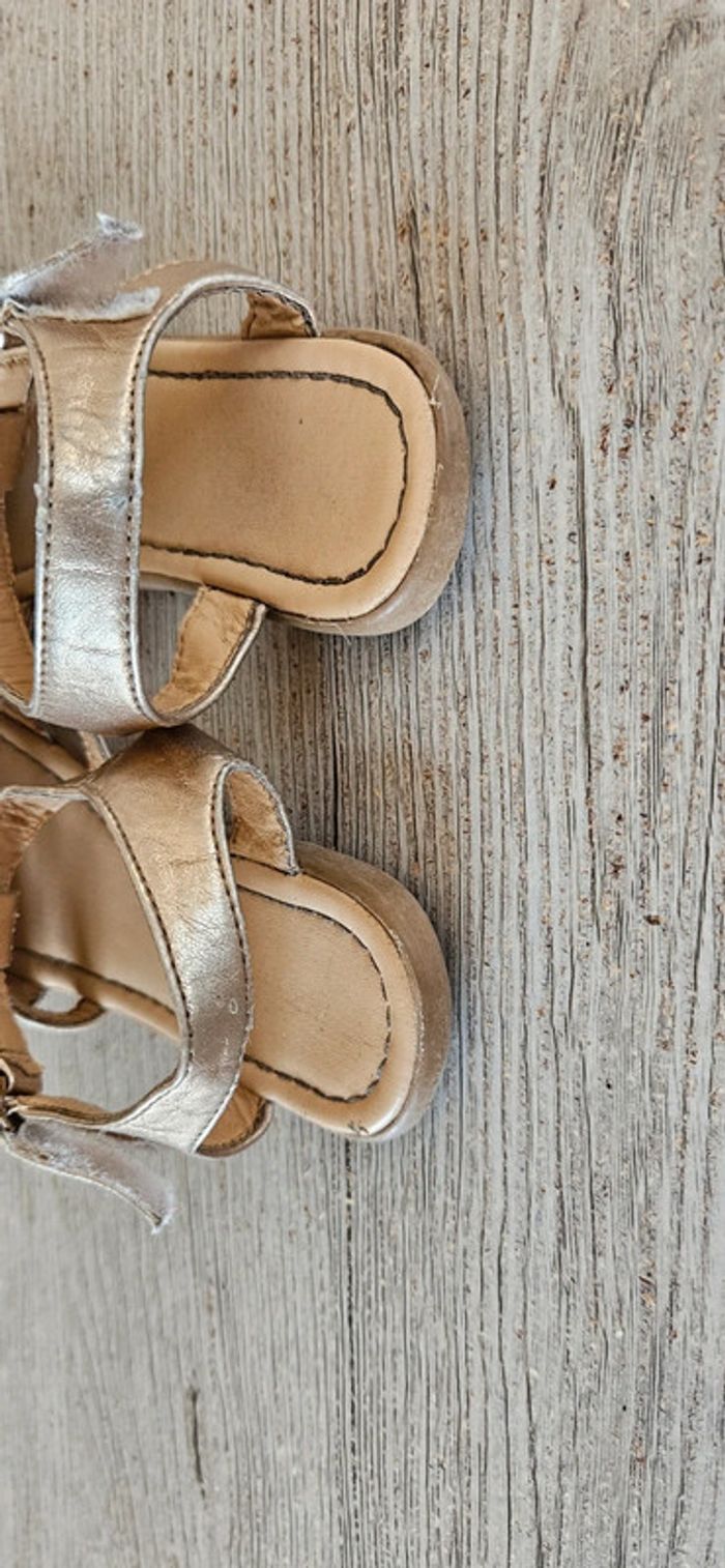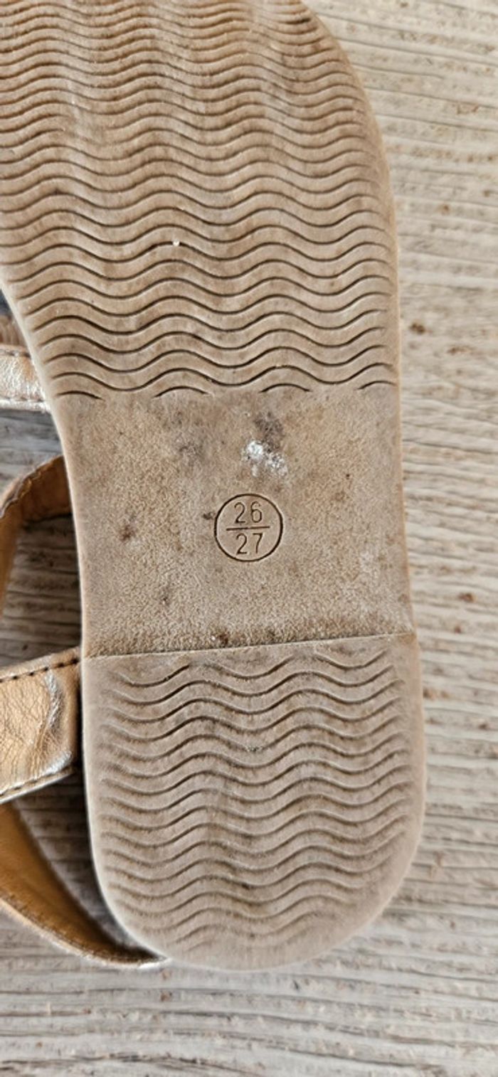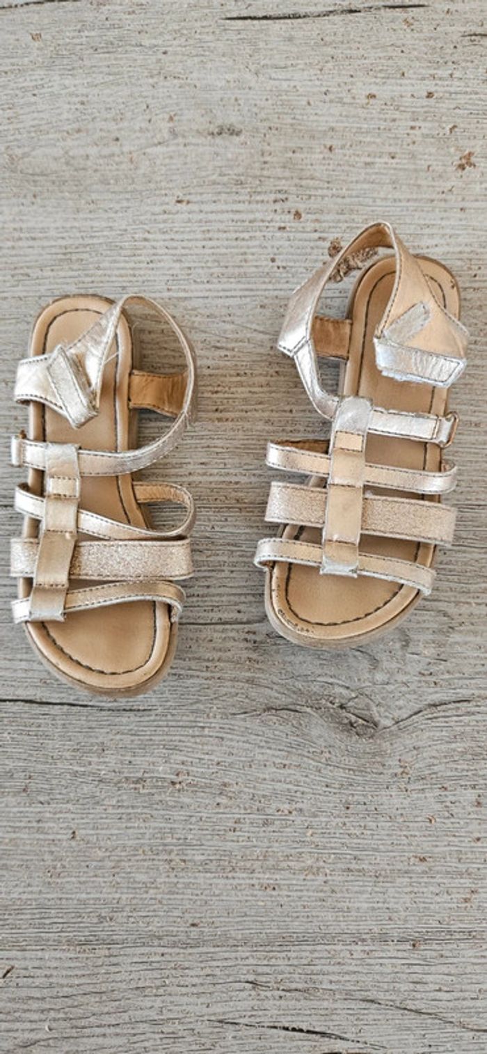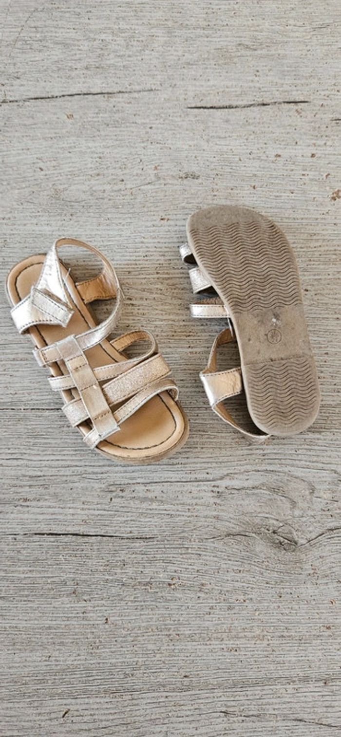 Paire de sandales simples poue petite fille. Pointure 26/27. Ma fille les a mises mais pas beaucoup. Il y a quelques traces visibles sur les photos : petites usures sur le devant de la semelle, aux stratches mais elles restent tout à fait mettables La semelle du dessous est peu usées #deborahtock_chaussures_enfant