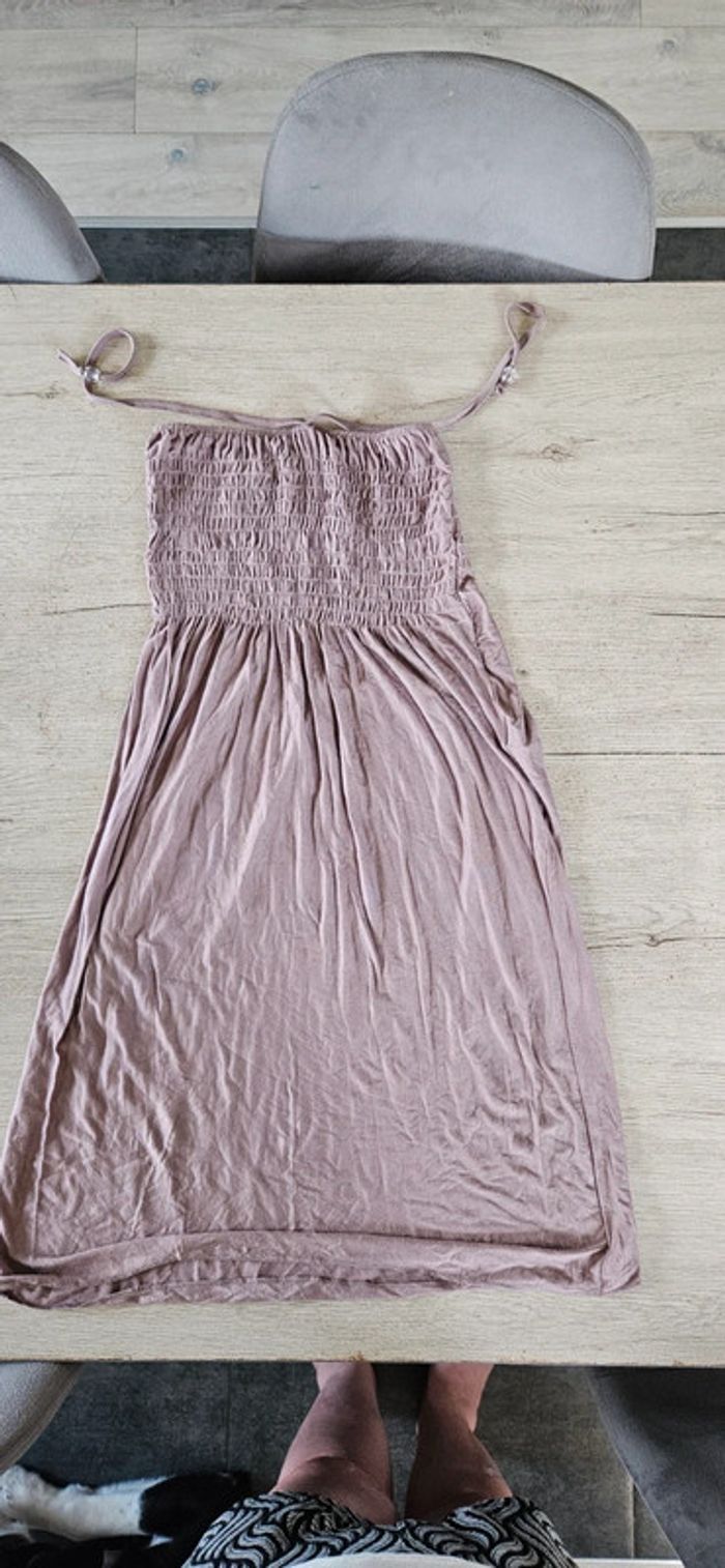 Jolie robe simple d été. Très peu mise. Elastique dans le haut. S attache avec 2 cordons. Taille unique, pour moi convient pour du 38 à 42 #deborahtock_femmeM #deborahtock_femmeL