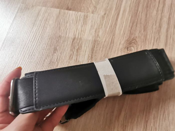 Bandoulière noire neuve sans étiquette, logo cheval en cimili cuir ou cuir (je ne sais pas) et en tissu avec les mousquétons assez solides de chaque côté, réglable, l'épaule renforcée largeur 5,5 cm, largeur bandoulière 3,5 cm, longueur sans rallongement 110 cm, poids 120g. Pensez à faire des lots afin de bénéficier des remises que j'ai régulièrement sur ma page. #bandoulièrenoire #bandoulierecheval #bandouliereneuve